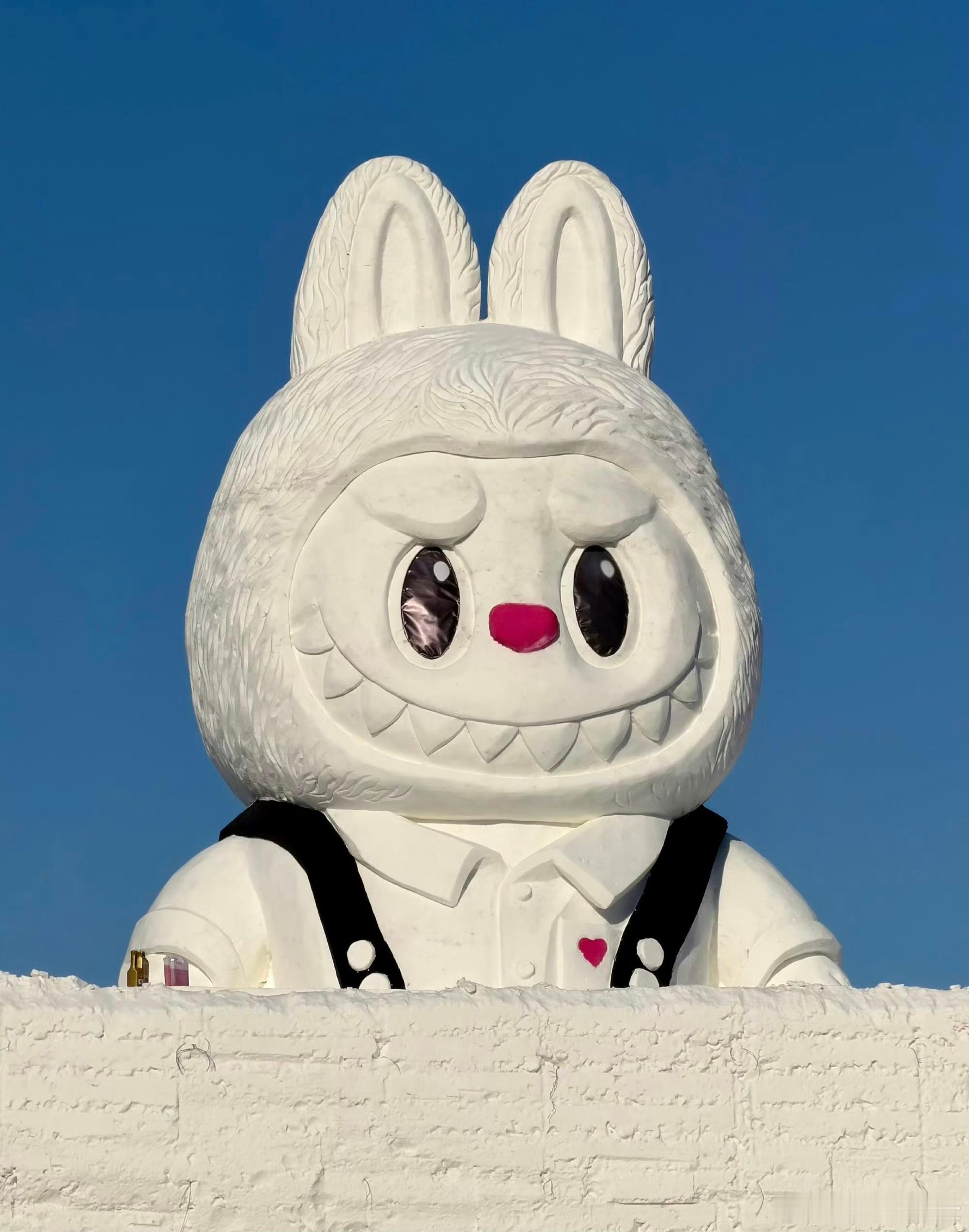 尔滨真的太懂年轻人了!巨型拉布布大雪人直接把潮玩浪漫焊在冰雪里,雪雕师傅精准拿捏住拉布布的灵魂萌感,标志性兔耳蓬松软萌,红鼻头撞色网红大雪人超吸睛,连小尖牙的俏皮劲儿都复刻到位,看似捣蛋实则软萌的气质和冰城的冬日氛围适配度拉满~作为泡泡玛特顶流和哈尔滨冰雪的跨界联动,这波冬日限定雪雕真的戳中潮玩党和冰雪党双重喜好!哈尔滨 大雪人