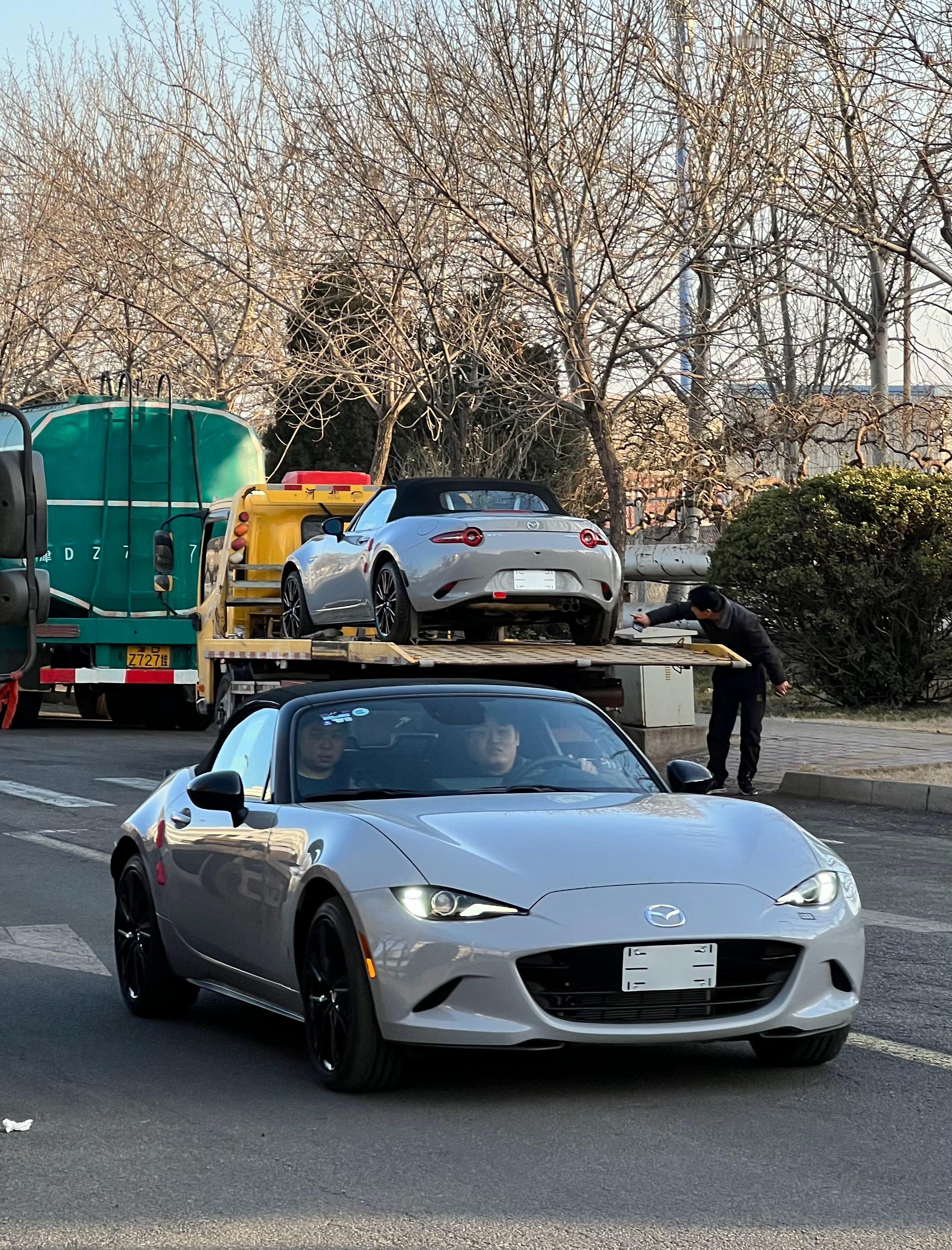 昨天也巧~昨天一位马自达客户订了一台航空灰,打完款准备交车然后有另外一个抖音来的客人来看车,看到这个颜色,效果很好,也要了一台同款。所以昨天就有了这一幕,一台车发走,一台车打完款,他先溜一圈。昨天他账户限额先打了20万,凌晨12:01,把剩下的钱补齐了。今天我们安排物流给他发走,物流大板车这两天就陆续停运了,以后再发板车只能发小板,并且小板到年前也会一直在涨价,估计最后会涨到10块钱1公里。所以如果你最近要买车的话要抓紧。 天津·中国天津自由贸易试验区