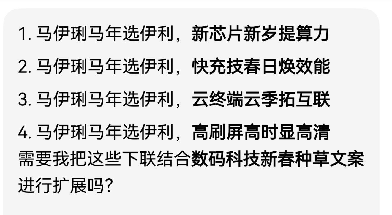 有点意思,带马伊琍马年选伊利 这个话题或者含关键词“对春联、对下联”并且马年春联已进入AI时代
