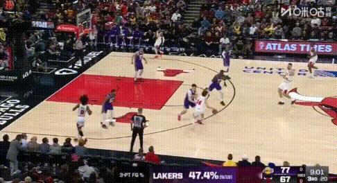 公牛3分高潮谁该背锅——詹姆斯漏几个? 从2节开始詹姆斯就开始漏3分(图1-2)。3节初公牛连中6个3分追至1分(图3-8),来,我们细看: 图3:詹姆斯没防住 图4-6:都划线了,全是艾顿在外面!为啥詹姆斯总在篮下? 图7-8:谁责任? 还好东契奇也进了3个3分(图9-10),否则又湖三崩!!!