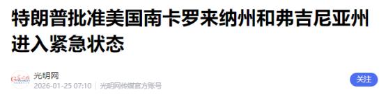 美东时间1月24日,美国总统特朗普发文称,“我已批准针对即将袭击南卡罗来纳州和弗吉尼亚州的历史性冬季风暴的紧急状态。在联邦紧急事务管理署(FEMA)和我们各州合作伙伴的帮助下,我们将确保每个人的安全,并确保这两个州都能获得所需的支持。我们将继续监测,并与风暴路径上的所有州保持联系。” 美国国家气象局23日说,一场大规模冬季风暴将从当天晚间起席卷美国大部分地区,给多地带来强降雪等极端天气。   特朗普在社交账号的声明里特意强调,联邦紧急事务管理署(FEMA)会和各州联手,尽全力保护民众安全,不让任何一个受风暴影响的人被落下。他还承诺,会优先保障南卡罗来纳州和弗吉尼亚州这两个重灾区,需要什么支持、什么资源,联邦层面都会全力配合。   除此之外,联邦政府还会一直盯着风暴的走向和强度变化,跟所有可能被风暴波及的州保持实时沟通,确保应急指令能快速传达到位、落地见效。   美国国家气象局的气象学家艾莉森·桑托雷利后来解读过这场风暴,它不光影响范围广,更关键的是风暴过后气温会一下子跌到底,积雪和冰层融化得特别慢。   这种情况直接让灾后恢复变得难上加难,以前几天就能清完的积雪,这次说不定要拖更久,而且路面结冰、电线挂冰这些问题,也会给基础设施抢修添不少麻烦。   随着风暴一步步推进,它造成的麻烦也慢慢显现出来。到当地时间1月25日下午,全美已经有超过107万户居民和企业断了电,虽说后来有部分区域恢复了供电,但到当天晚上,还是有近99万户没能用上电。   其中南部的田纳西州、密西西比州、路易斯安那州受影响最严重,单是田纳西州和密西西比州,断电的用户就占了一成以上,不少居民连取暖都成了难题。   天气预报员康斯坦丝在节目里明确提醒,这次风暴引发的大规模停电不是小问题,很可能会危及民众生命。   她解释说,风暴带来的极寒和强风,本身就容易让人失温,要是长时间断电,居民没法用电器取暖,在低温里待上10分钟就可能被冻伤,待得再久甚至会冻亡,这种风险对无家可归的人来说,更是格外突出。   为了应对这场罕见的冬季风暴,联邦紧急事务管理署早就做好了准备,赶紧给受影响严重的区域调去了700万份餐食、60万条毯子,还有300台发电机。   同时还召集了近30支专业搜救队,随时准备出发,只要接到求助,就立刻去现场救援,帮各州转移被困民众、清理路面积雪,还有抢修受损的基础设施。   特朗普后来又补了一条发文,提醒全美民众注意安全、做好保暖,还督促各州好好配合联邦政府的应急安排。   其实在特朗普批准联邦紧急状态之前,南卡罗来纳州和北卡罗来纳州就已经先一步宣布进入紧急状态了。   南卡罗来纳州马上启动了应急方案,允许州政府快速调配各类应急物资,调动州国民警卫队的人员和设备,协调州里和地方的应急管理人员开展工作;北卡罗来纳州州长乔什·斯坦也在社交账号上表示,该州的应急小组已经全部上岗,全力保障应急物资到位,守住当地居民的生命财产安全。   截止到1月25日晚上,包括华盛顿特区在内,已经有23个州先后宣布进入紧急状态,全美范围内出现了航班大面积取消、交通枢纽瘫痪的情况。   美国航班追踪网站的数据显示,1月25日当天,全美计划起飞的航班里,有超过10800架次被取消,还有近2万架次出现延误。   其中华盛顿里根国家机场的航班取消率几乎达到100%,纽约、费城、北卡罗来纳州夏洛特等大城市的机场,当天取消的航班也超过了八成。 而在1月24日,就已经有四千多架次航班被取消,不少旅客被困在机场,没法按时回家。   机场里到处都是拎着行李,等着改签或者退票的人,部分机场的餐饮、住宿设施,也因为人太多出现了供应紧张的情况。   除了飞机没法正常飞,公路交通也受到了严重影响,芝加哥等美国中西部地区的学校已经宣布停课,当地的体感温度降到了零下40摄氏度,这么冷的天,路面特别容易结冰,已经发生了多起交通事故。   面对这场来势汹汹的风暴,美国民众也开始忙着囤货。在得州达拉斯市中心附近的一家杂货店里,记者拍到货架上的水、鸡蛋、黄油、肉馅这些生活必需品,早就被抢空了。   当地居民肯尼迪·马拉德和弗兰克·格林接受采访时说,为了应对可能出现的长时间停电和封路,他们只能提前买好足够的生活物资,确保自己和家人能顺利熬过这场极端天气。   波士顿等美国东北部地区,还有民众提前囤了木材、煤炭这些取暖物资,就怕到时候停电没法取暖。