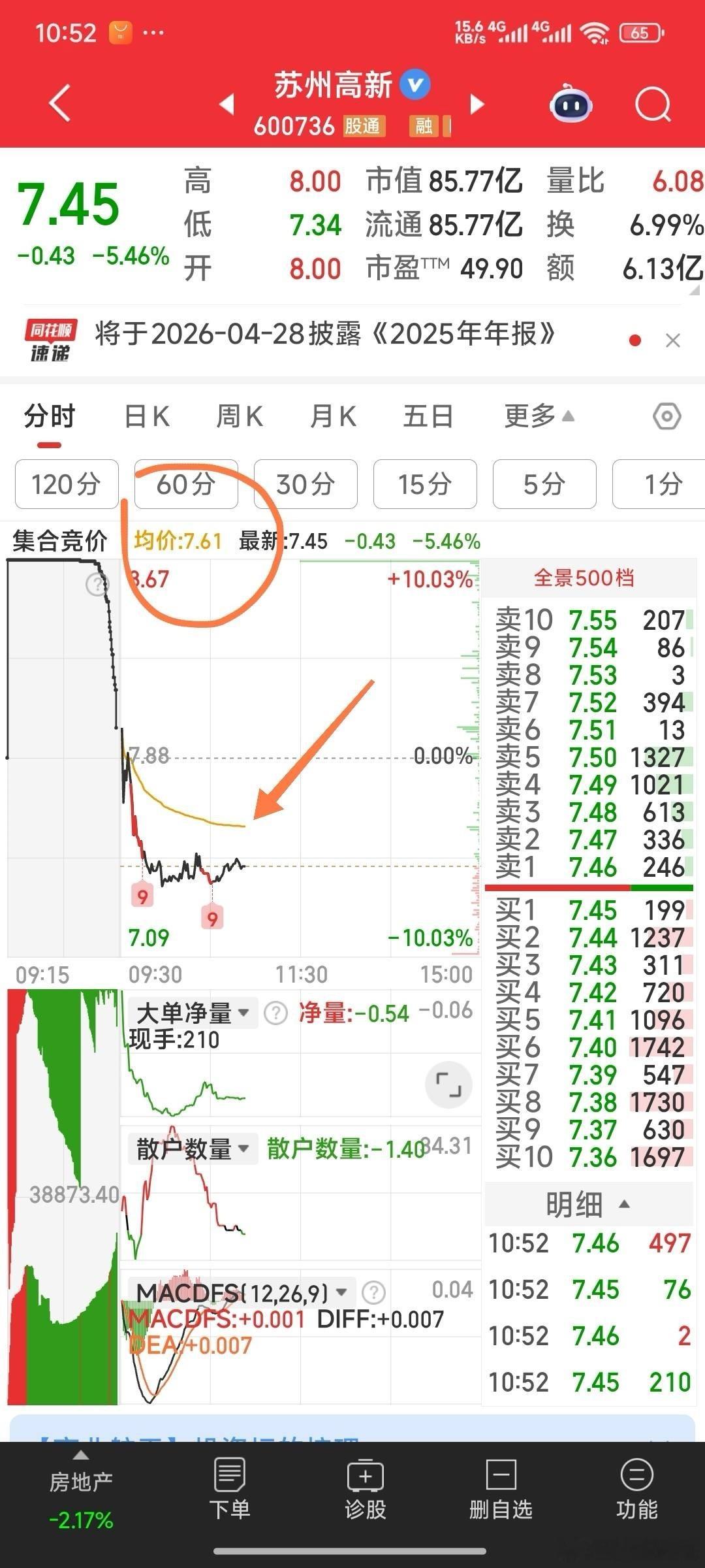 苏州高新,也关注站上分时均价7.61元后的再强势启动机会。