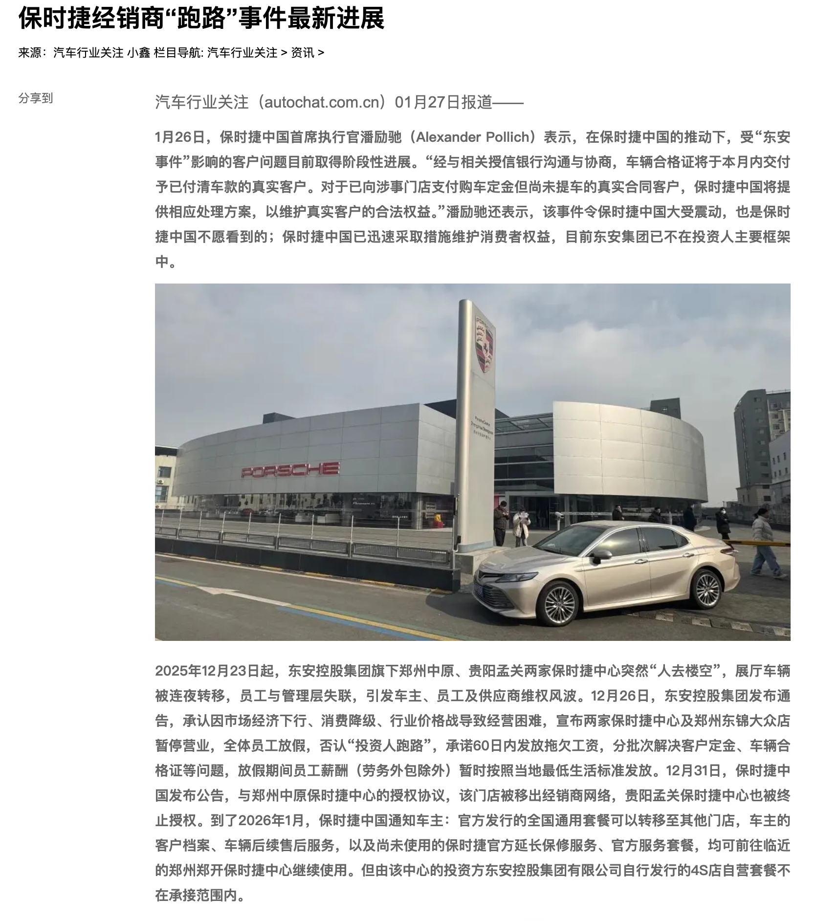 保时捷中国CEO回应东安跑路新进展:合格证本月内向已付款客户交付