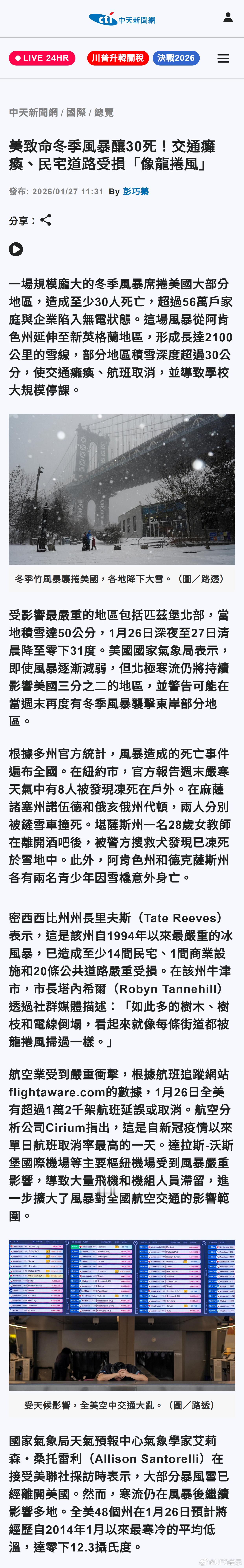 美致命冬季风暴酿30死!交通瘫痪、民宅道路受损「像龙卷风」