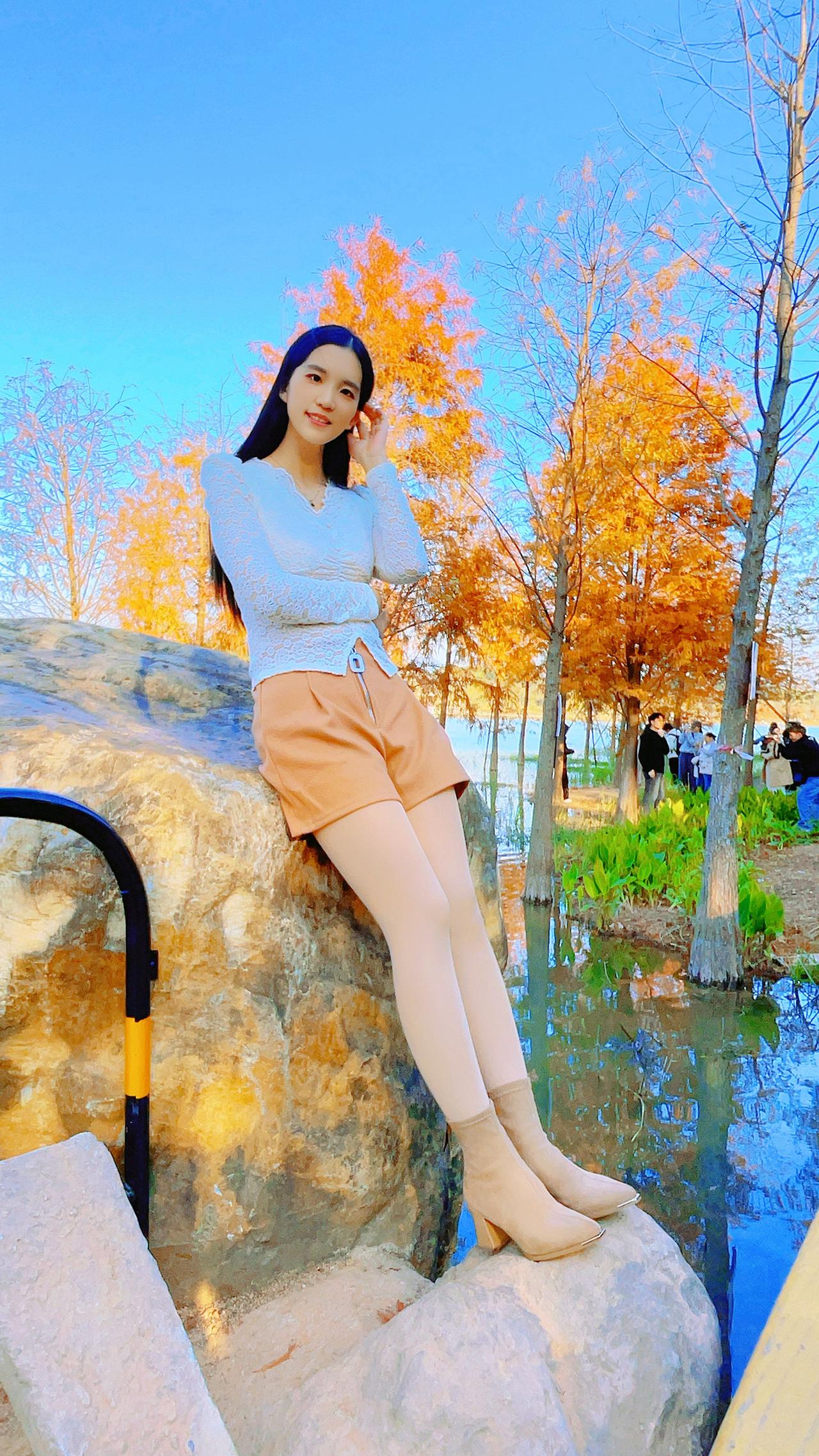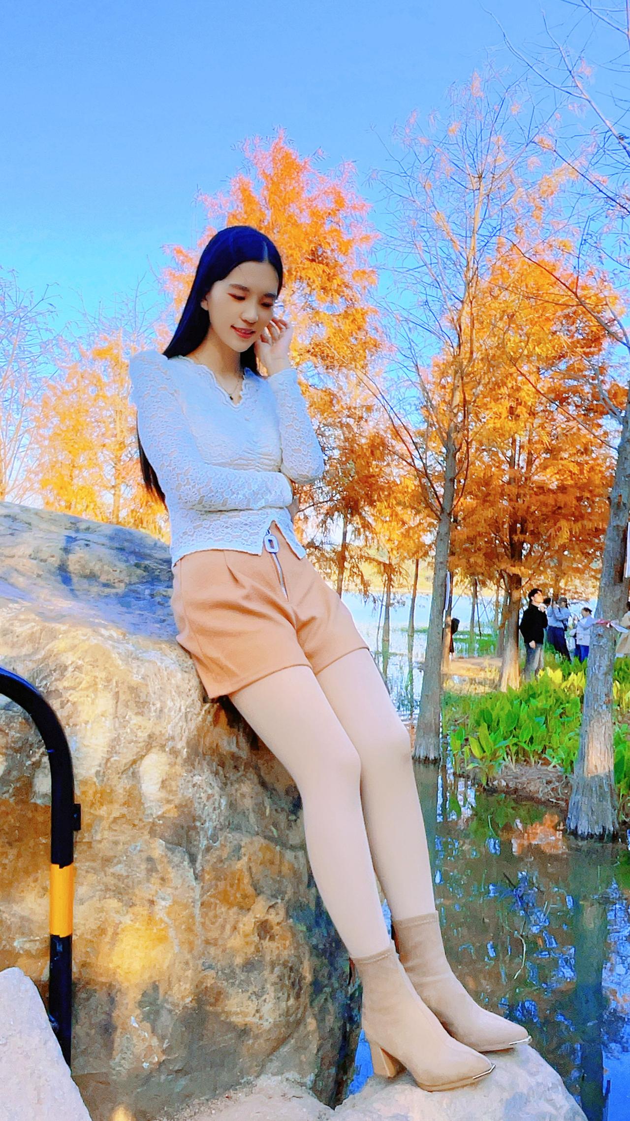 阳光没直射过来,袜子上的反光都藏起来了。美女 油亮袜 过膝袜 袜子
