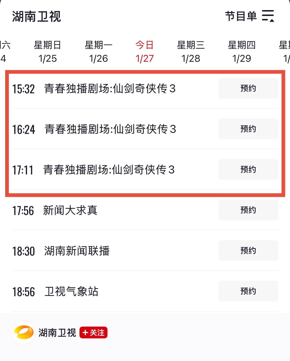 杨幂今天1月27日起,电视剧《仙剑奇侠传3》登陆湖南卫视15:30白天剧场