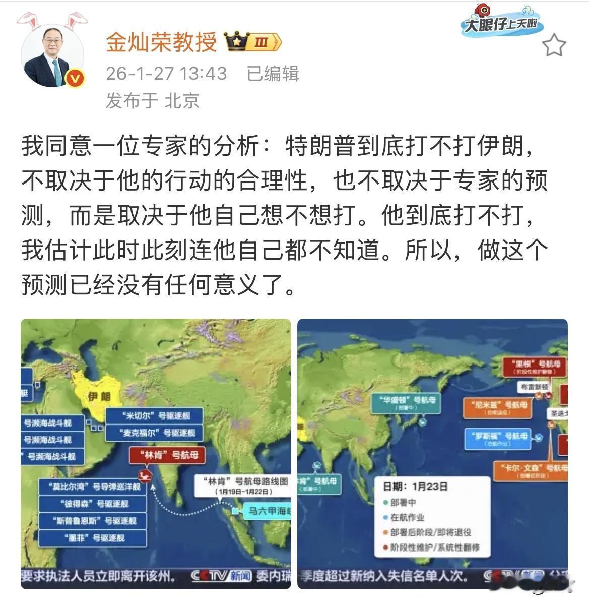 金灿荣:特朗普现在打不打伊朗,他自己都不知道! 就在刚才,金灿荣教授更新了自己