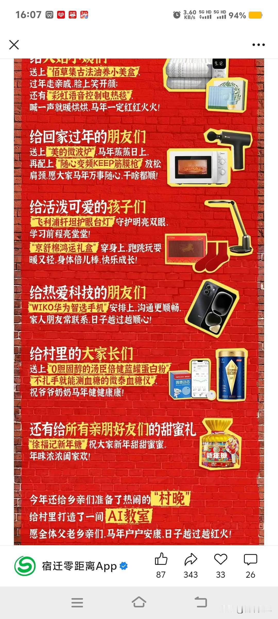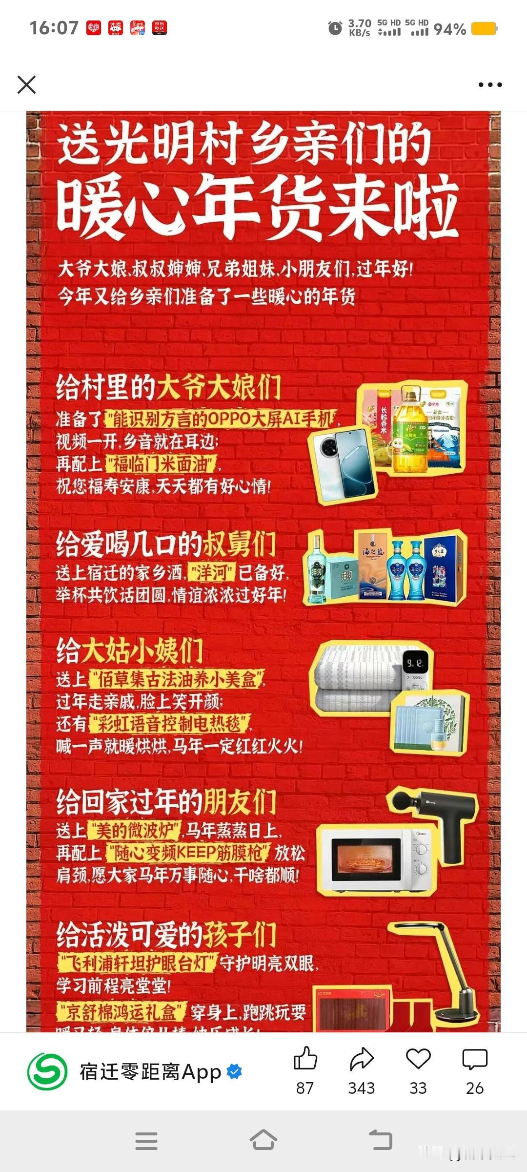 2026刘强东又给村民发年货了,没嫁的赶紧嫁这村,没娶的赶紧娶这村的。 什么都有,都是实用的东西,吃喝衣食住行样样都有,大宿迁的名片。刘强东品牌价值