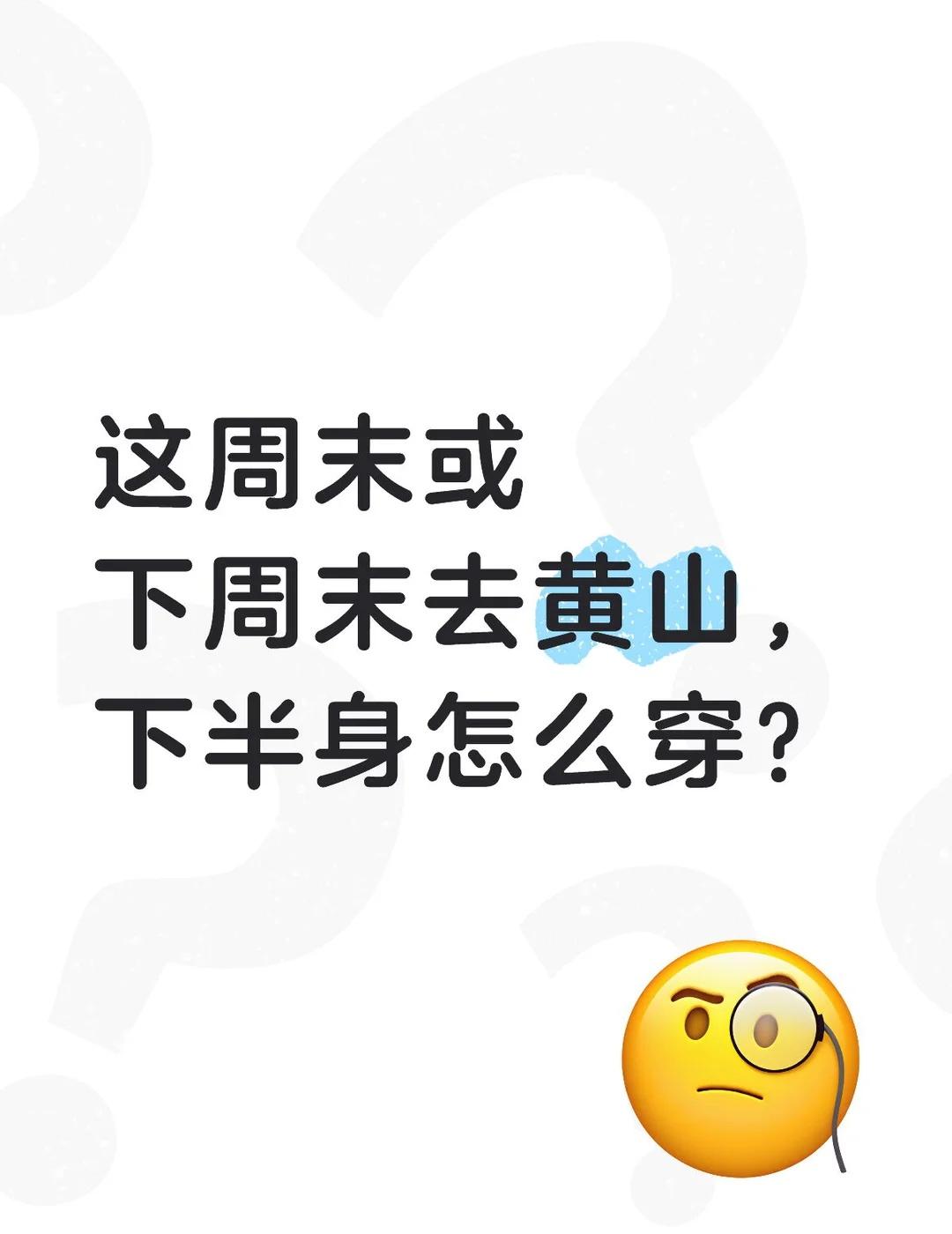 计划这两周周末去黄山,下半身怎么穿? 上半身:速干衣+摇粒绒+冲锋衣 下半身:速干裤+冲锋裤 上半身需不需要再加个羽绒马甲? 下半身很纠结直接单层冲锋裤,还是要加绒冲锋裤,又或者摇粒绒+冲锋裤 不知道穿啥 黄山 爬山