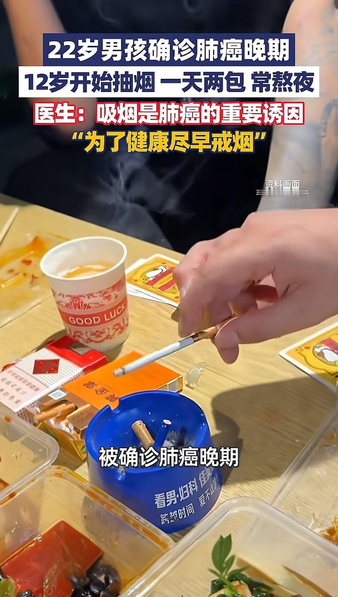 1月26日(消息)河南郑州,22岁男孩吸烟10年确诊肺癌晚期:一天两包烟 经常熬夜,医生:吸烟是肺癌的重要诱因,为了健康尽早戒烟