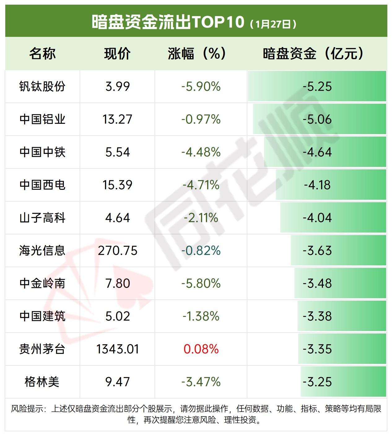 1月27日暗盘资金流入TOP10,哪些股票值得关注? 暗盘资金流入前十个股涨幅