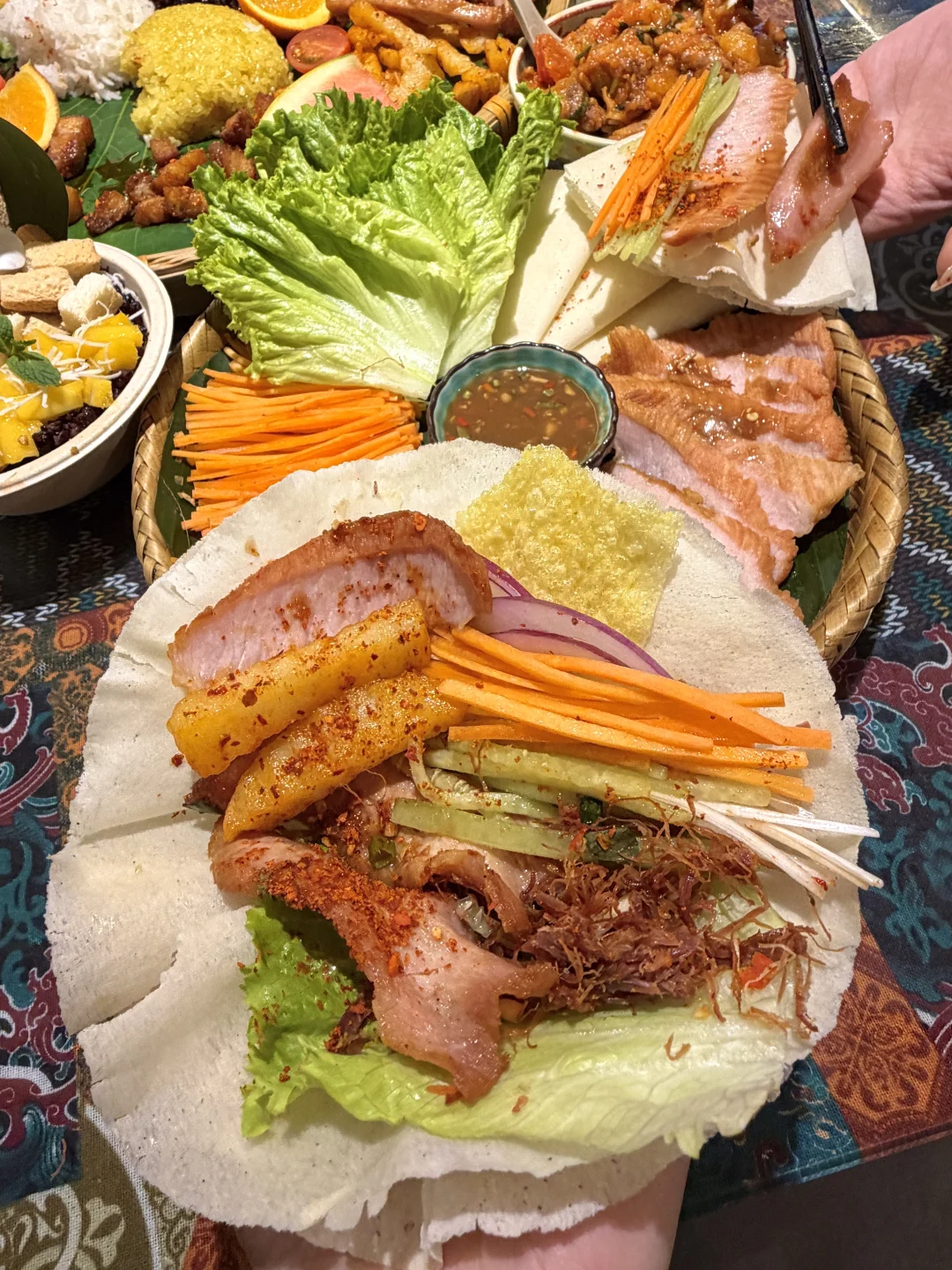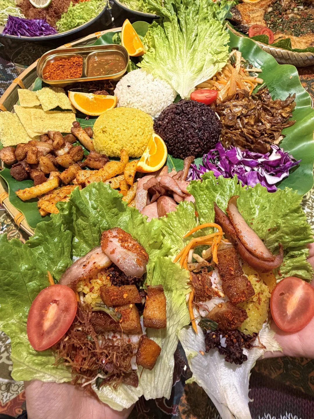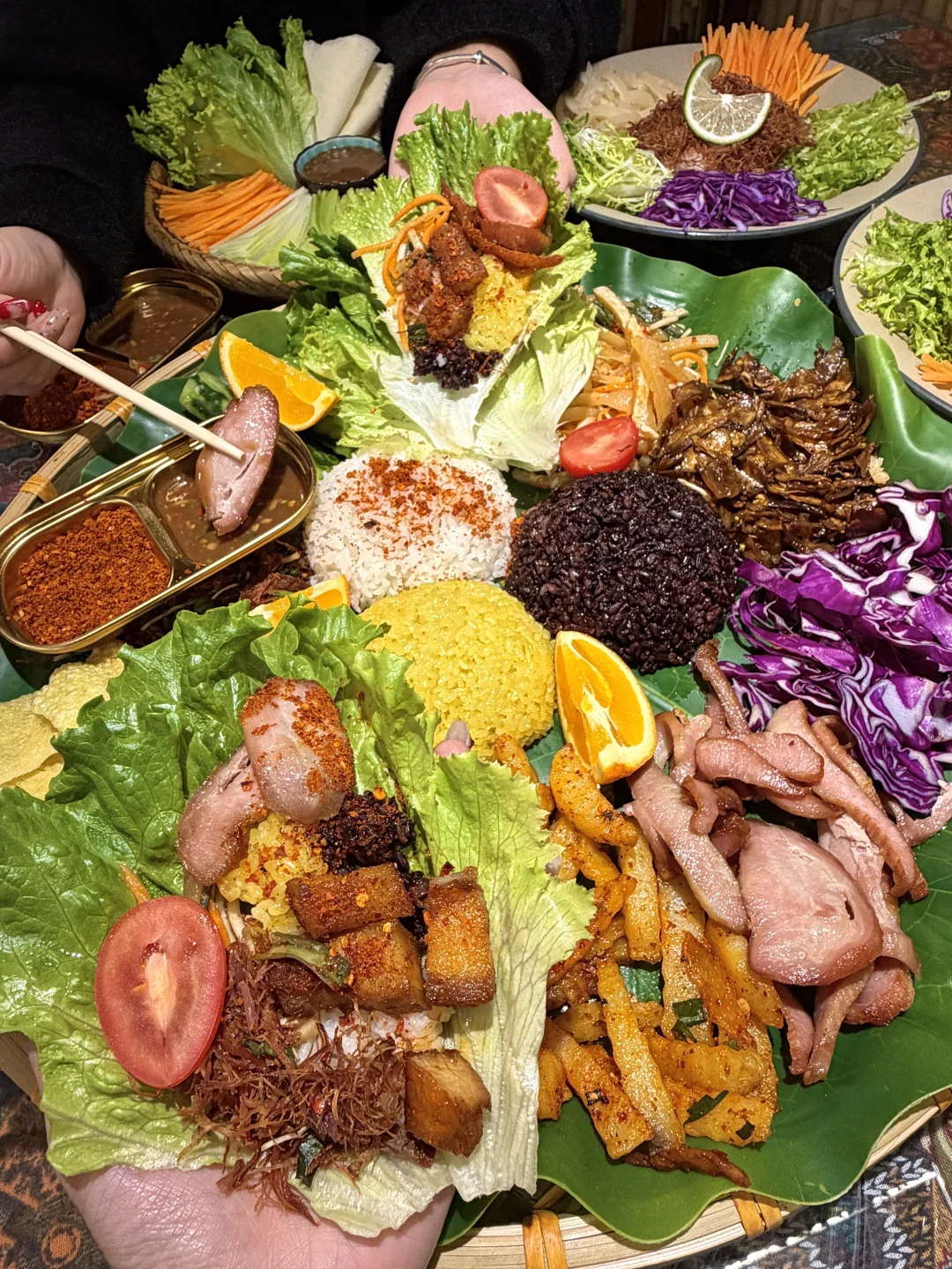 感谢大理本地人推荐!下了高铁直奔这家(📍金傣苑)不到饭点,店门口都坐满了!等了半小时吃完表示真的平价好吃😭😭 一定要试试超大盆的傣味手抓饭,抢都抢不过我朋友,全桌人吃完超满足!菠萝蜜糯米饭也好绝啊香甜糯叽叽~蘸椰汁一口下去真的惊艳到我!还有泡鲁达、版纳油焖洋芋鸡……好多正宗云南菜,均价才二三十!真心便宜好吃 地理位置也好方便!离大理古城、苍山洱海都不远!唯一缺点,就是要排队记得早点去