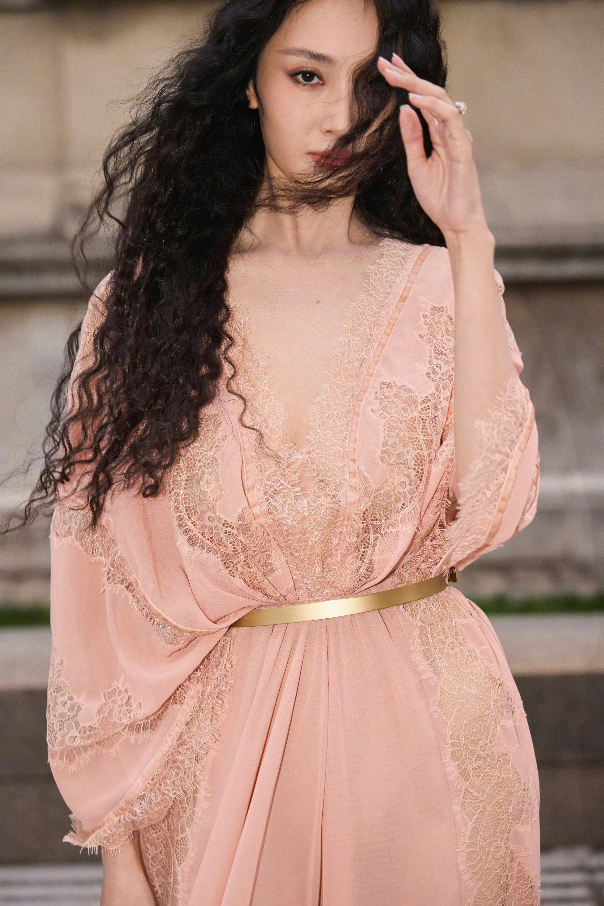 王紫璇你和女娲指定关系挺好 王紫璇巴黎秀场造型封神了,玫瑰色古典纱裙温柔又贵气,深V蕾丝搭配蓬松羊毛卷,自带慵懒氛围感,冷艳又迷离,这张脸就是女娲炫技,清冷柔媚融合得恰到好处。