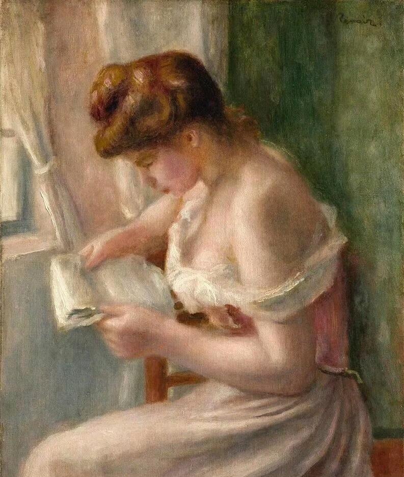 🌹书摘|读书对于智慧,也像体操对于身体一样。——爱迪生 🌹赏画法国印象派画家雷诺阿油画 油画 书摘
