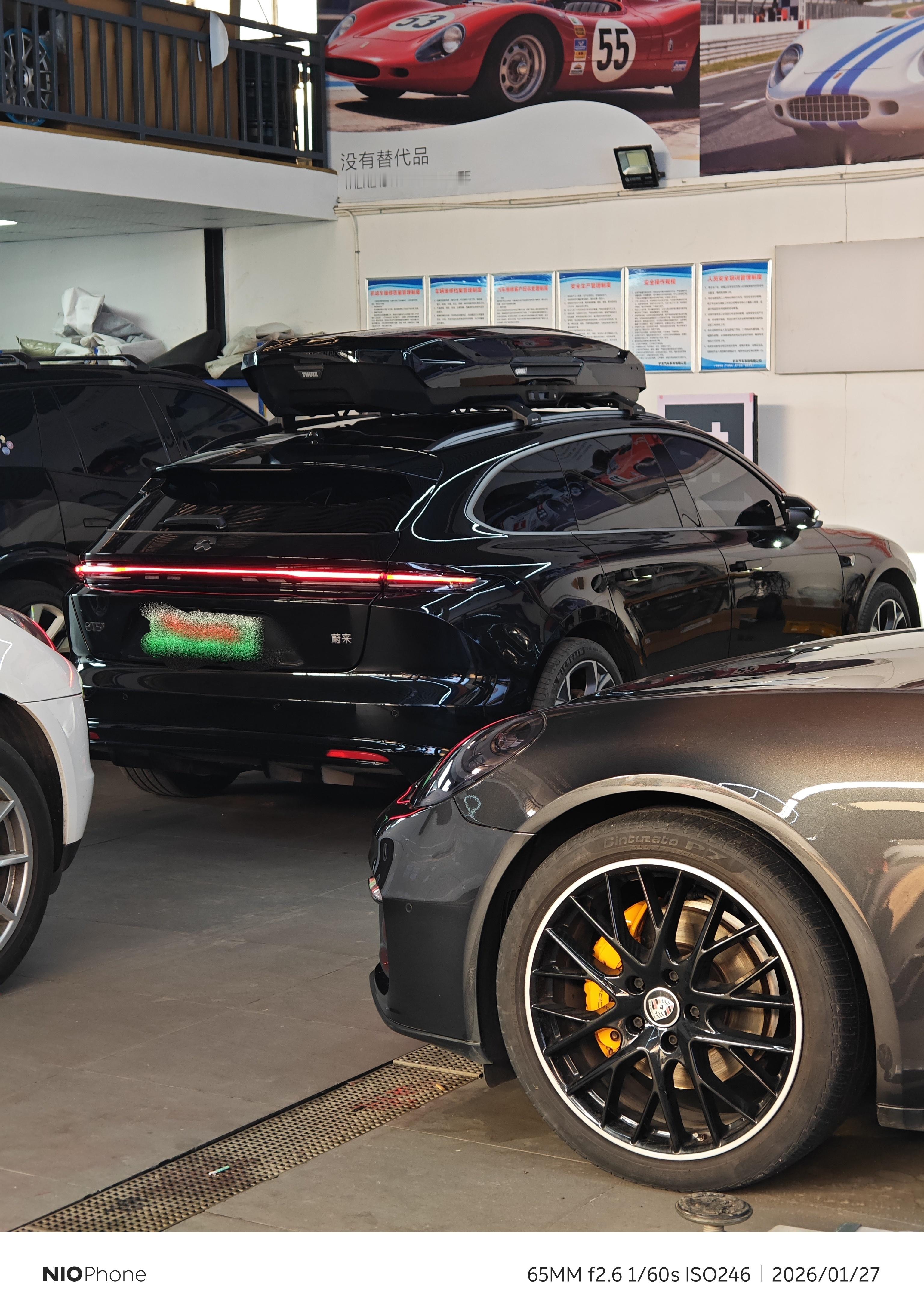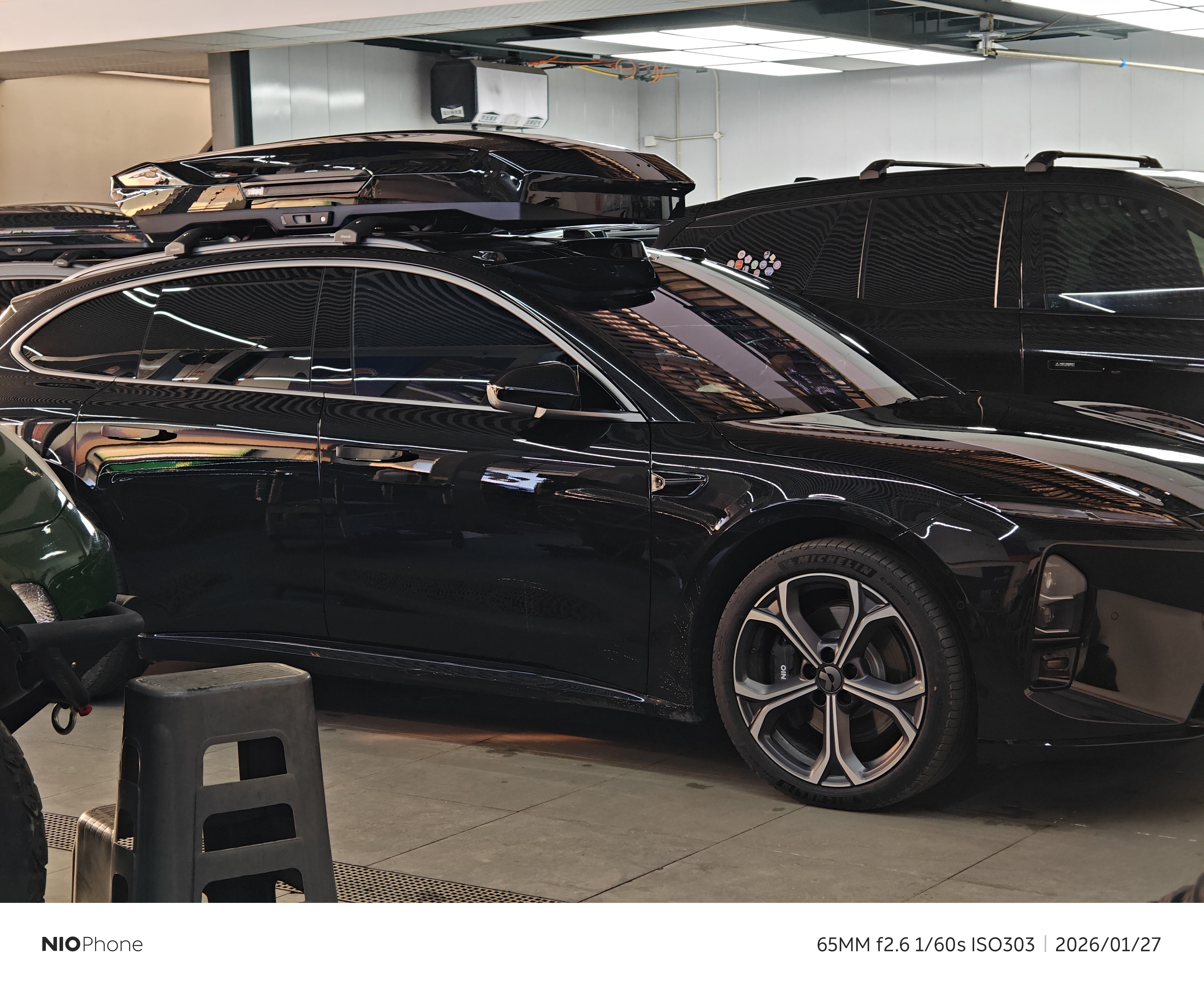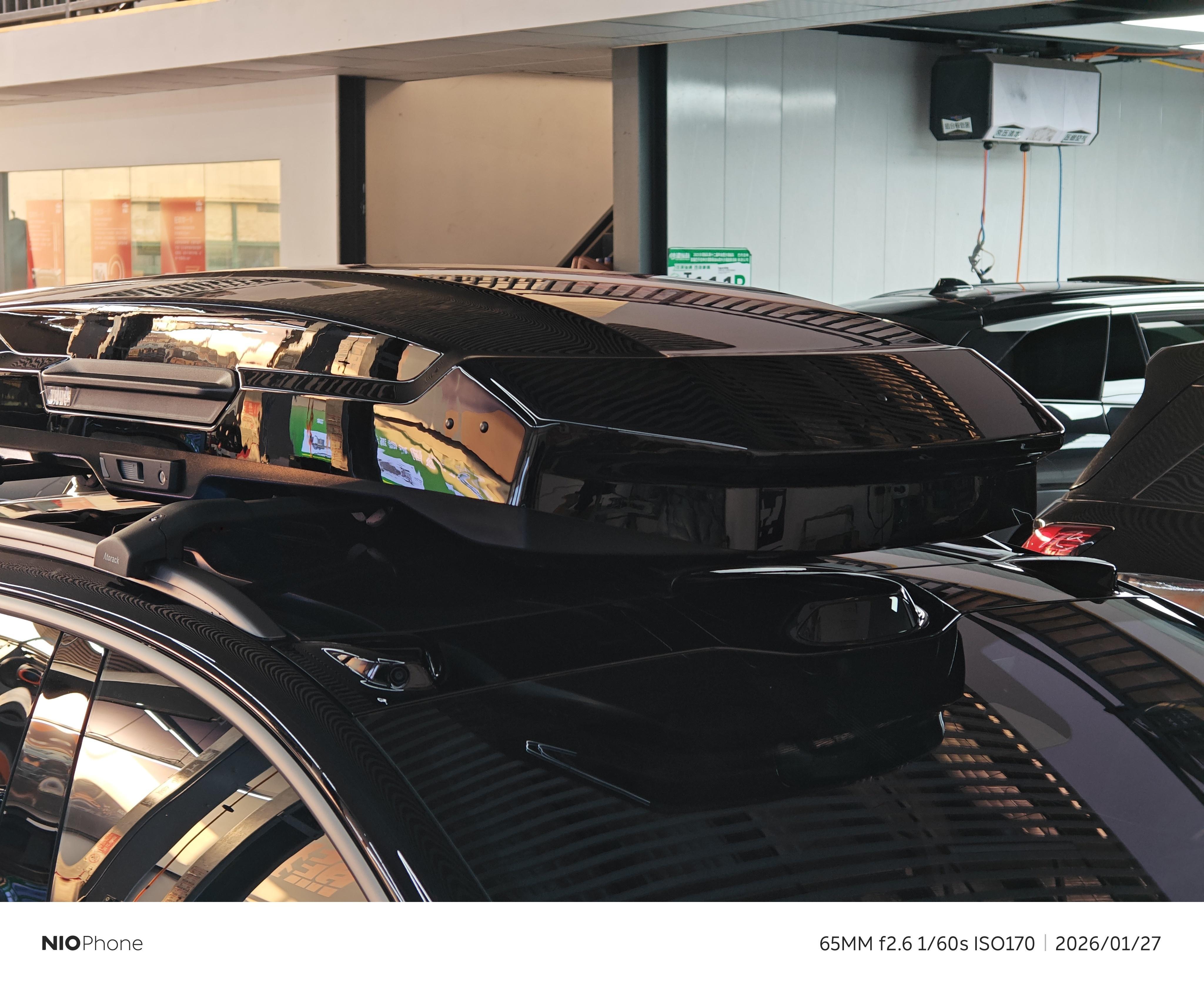 来蔚来窝里装个车顶箱别说,这箱子造型跟蔚来前脸还是很搭的甚至觉得这是照着蔚来设计的