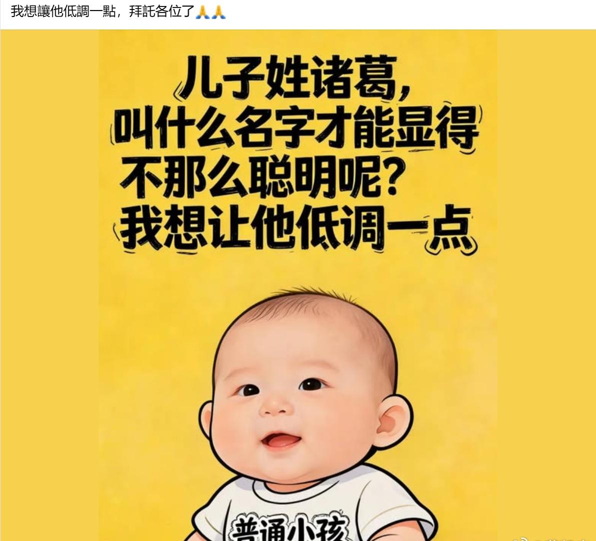 诸葛家的小孩,想取一个显示不聪明的名字让他低调点,你们觉得可以叫啥?