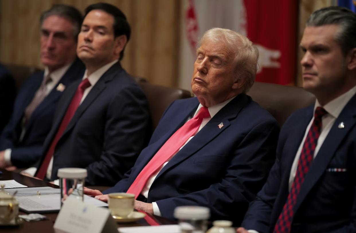 这位“大霸王”感觉是太累了。 特朗普开会睡觉这事还挺有意思,要知道,他在政治舞台上一直是个风云人物,风风火火的,各种言论和决策都能搅得世界舆论场不得安宁。 也许是当“大霸王”太累了,连开会都撑不住睡大觉。这画面想想就挺有反差感,那个在镜头前强硬表态、滔滔不绝的特朗普,居然在严肃的会议上呼呼大睡。不过这在一定程度上也让人觉得他也是个普通人,也有精力不济的时候。不知道他梦里是不是还在谋划着什么大事情,还是单纯地想好好休息会儿。