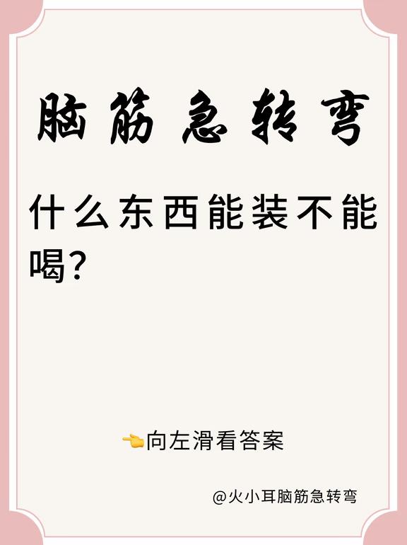 脑筋急转弯,什么东西能装不能喝? 开发大脑 大脑 猜谜语 脑筋急转弯 每日一问 开始动脑吧 激发想象力 右脑开发 益智