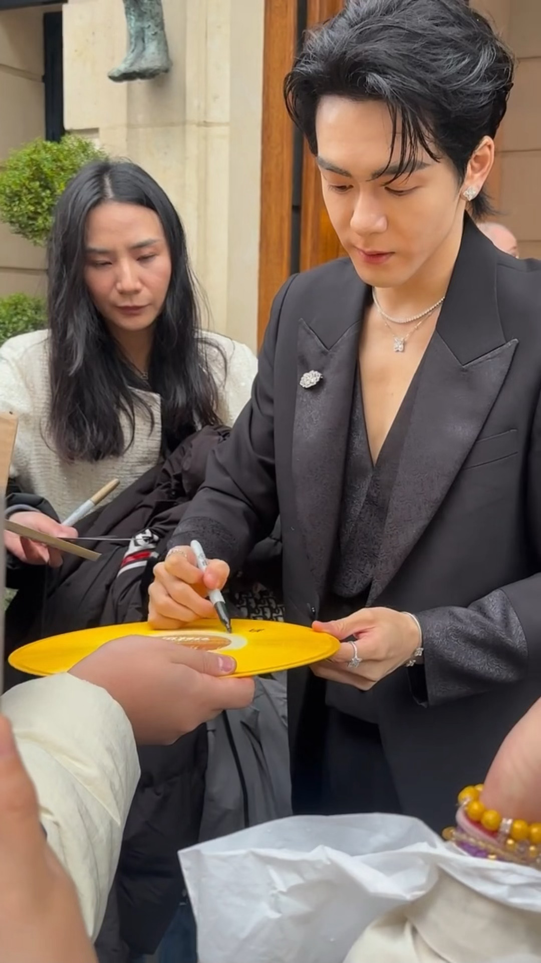 穿着深v西装挨个签名的帅气欧巴曾舜晞巴黎深v西装造型