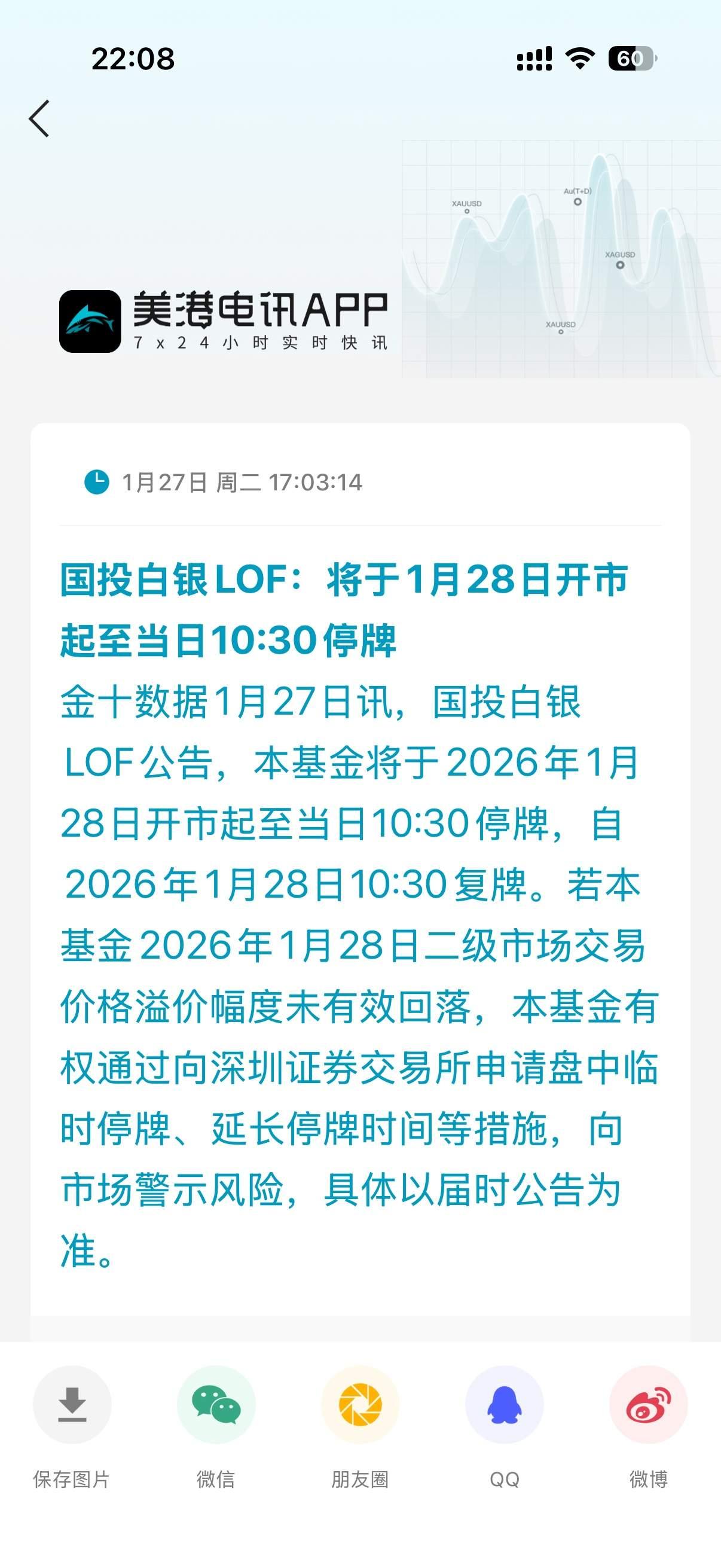 继白银关门之后,一家黄金也关门了。 朋友昨天晚上跟我说完白银将会停购之后,我本来是不信的,结果两个多小时之后白银就关门了。 他当时还跟我说了句,下个要关门的就是黄金。 我对他嗤之以鼻。 白银是可以飞入寻常百姓家的廉价物品,黄金可是贵金属,不是谁都能炒得起的。 今天现实啪啪打脸,我觉得我是真服了。 他还说,关门之后,必然会告诉你这是为你好。 毕竟国家队把钱砸进去,要比我把钱砸进去要好。 国家队富了,对于全国人民来说,才是真得好。 我们是什么,区区小民而已。