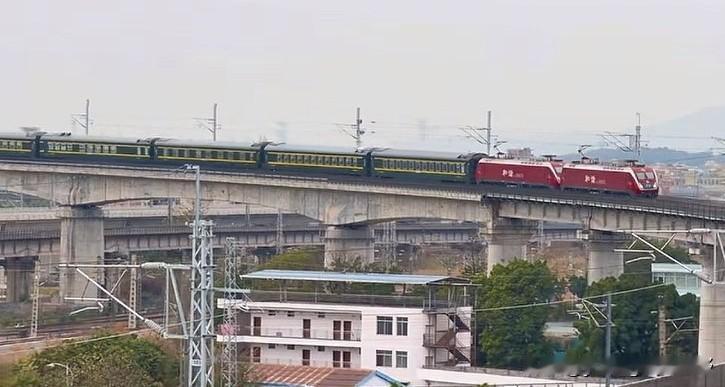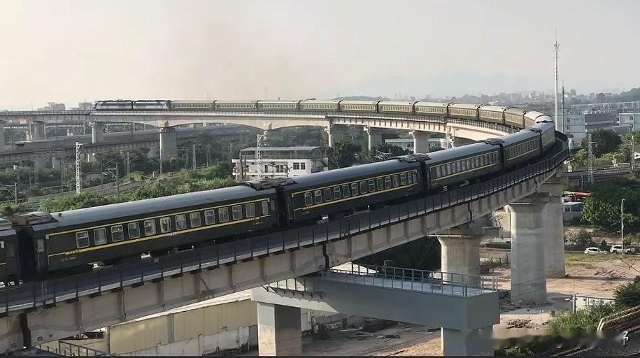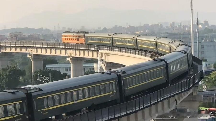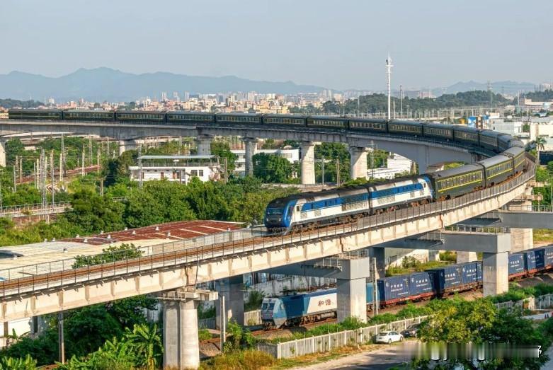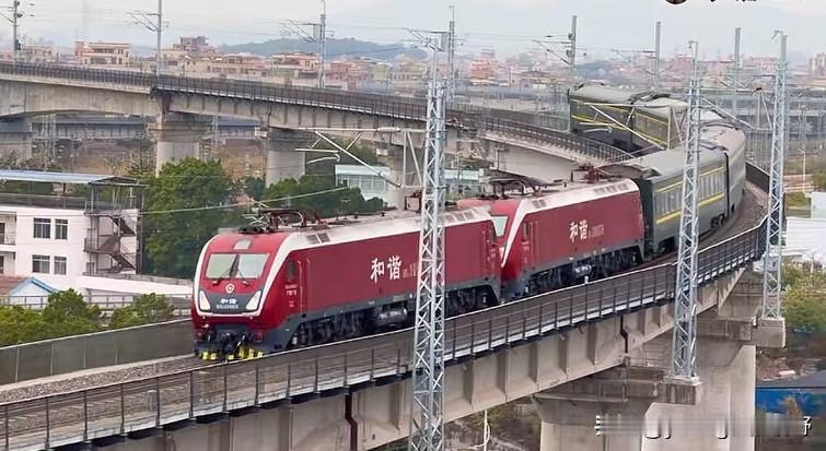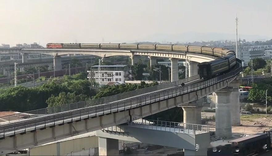 广州铁路枢纽之江大联络线。这条线路是伴随着广湛高铁施工,广茂铁路广佛段拆除,为广茂铁路开拓的另一条疏解通道。其中在广州白云江村,因线路跨越现有京广铁路,因此在京广线的上方修建了一个曲线半径非常小,坡度又非常大的弯道。广茂线方向的列车在通过此桥时,会留下一道非常漂亮的弧线身影。同时,由于内燃机车爬坡也显得比较吃力,因此在爬坡的过程中也会发出震耳欲聋的咆哮声,同时喷出滚滚浓烟,场面一度十分壮观。随着近期江大联络线铁路电气化的完成,弯道外侧加装了电线杆与接触网,此处拍车的画面也没有过去那么清爽整洁了。内燃机车也换成了电力机车,列车通过的场景也没有过去那么震撼了。