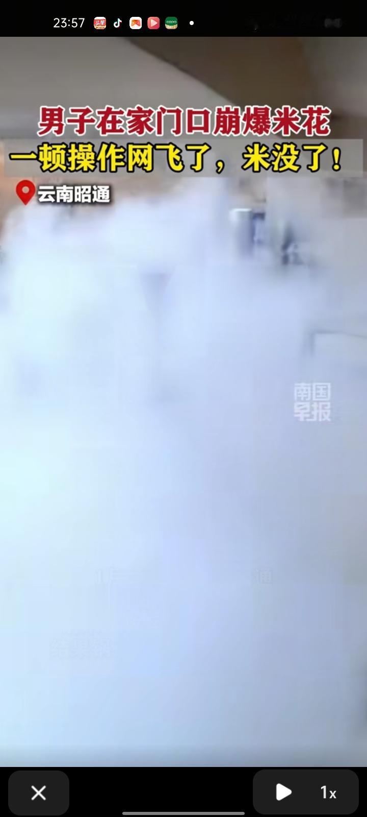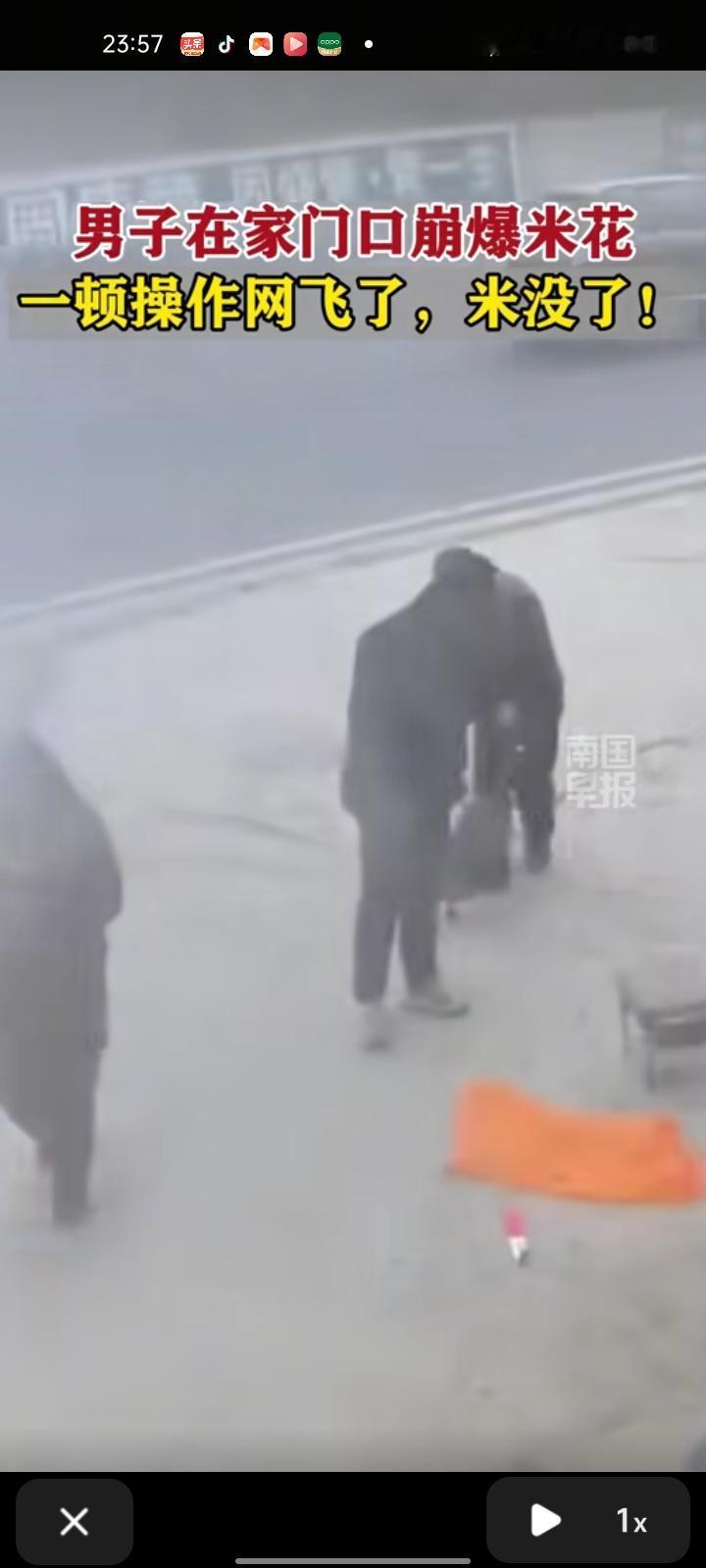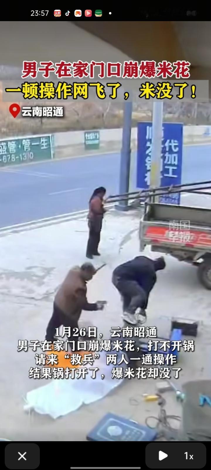 1月26日,云南昭通。男子在家门口崩爆米花,打不开锅,请救兵两人一通操作,结果锅打开了,爆米花却没了。 当事人称,当时在安全可控的状态下操作,但因为是新锅具,第一次上手不太熟练。