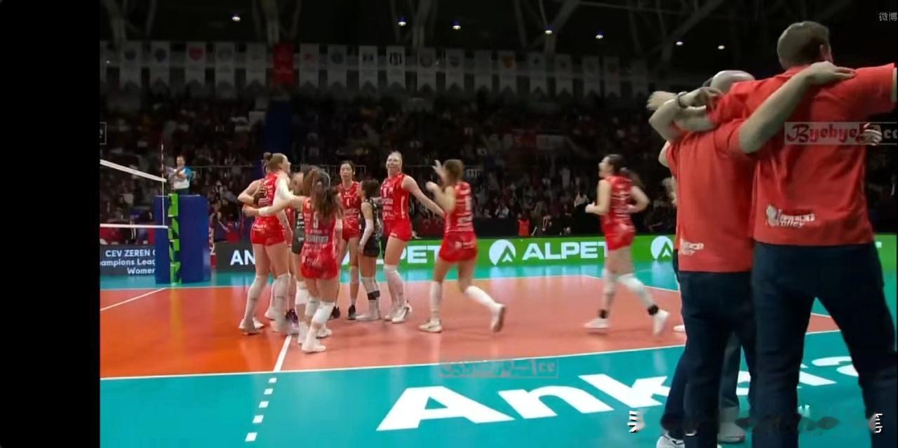 德吉纳罗冲向朱婷,庆祝比赛胜利✌,23:19时,又是朱婷的关键发球率先为球队拿到赛点,关键时刻再显关键人物角色。此外,卢比安强势的4拦,哈克的全力爆发,30扣18中5拦3发,拿下全场最高26分,都为赢球立下大功。科内利亚诺球员东方不亮西方亮,这状态势不可挡,目前欧冠已5胜,稳居小组第一。朱婷