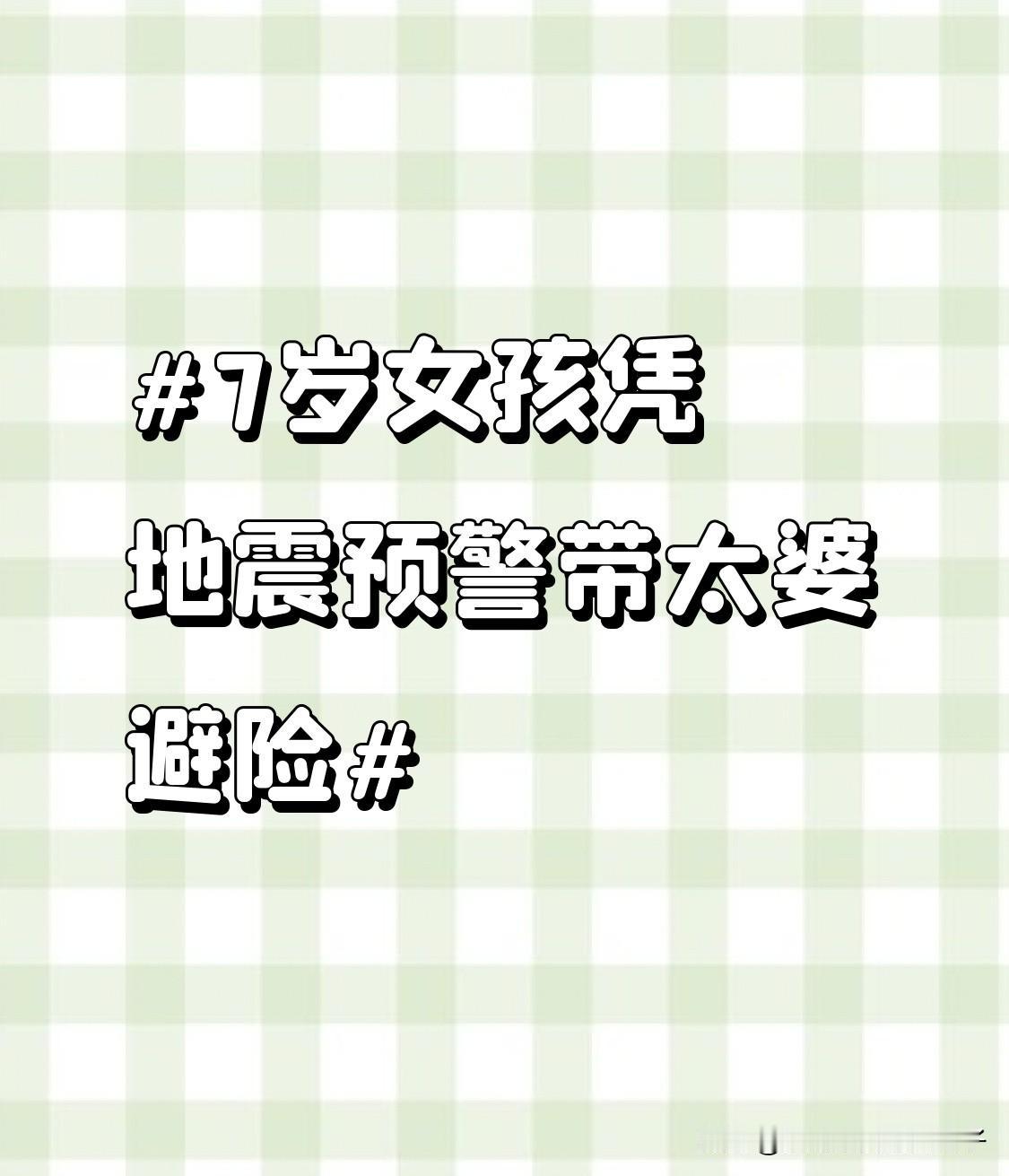7岁女孩凭地震预警带太婆避险 2026年1月26日下午,甘肃迭部地震让陕西渭南澄城县有了震感。李先生家监控记录了暖心一幕:7岁的小雨和80岁太婆在家,电视弹出地震预警、警报声响起。平时胆小的小雨瞬间“开挂”,10秒内拽着太婆躲到卫生间墙角。刚站稳屋子就晃了起来。 原来小雨在幼儿园学过避险知识,关键时刻派上了用场,撤离时还不忘检查太婆拖鞋。这波“教科书级避险”,一是靠地震预警系统,二是安全教育起了大作用。这也提醒咱,平时得多给孩子普及安全知识,说不定孩子哪天就能保护家人!必须给勇敢的小雨点赞!