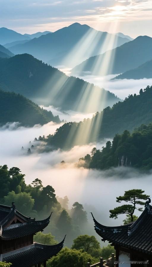 上联:遥望青山云雾绕 下联:瑞映碧海日光辉 横批:山海祥云