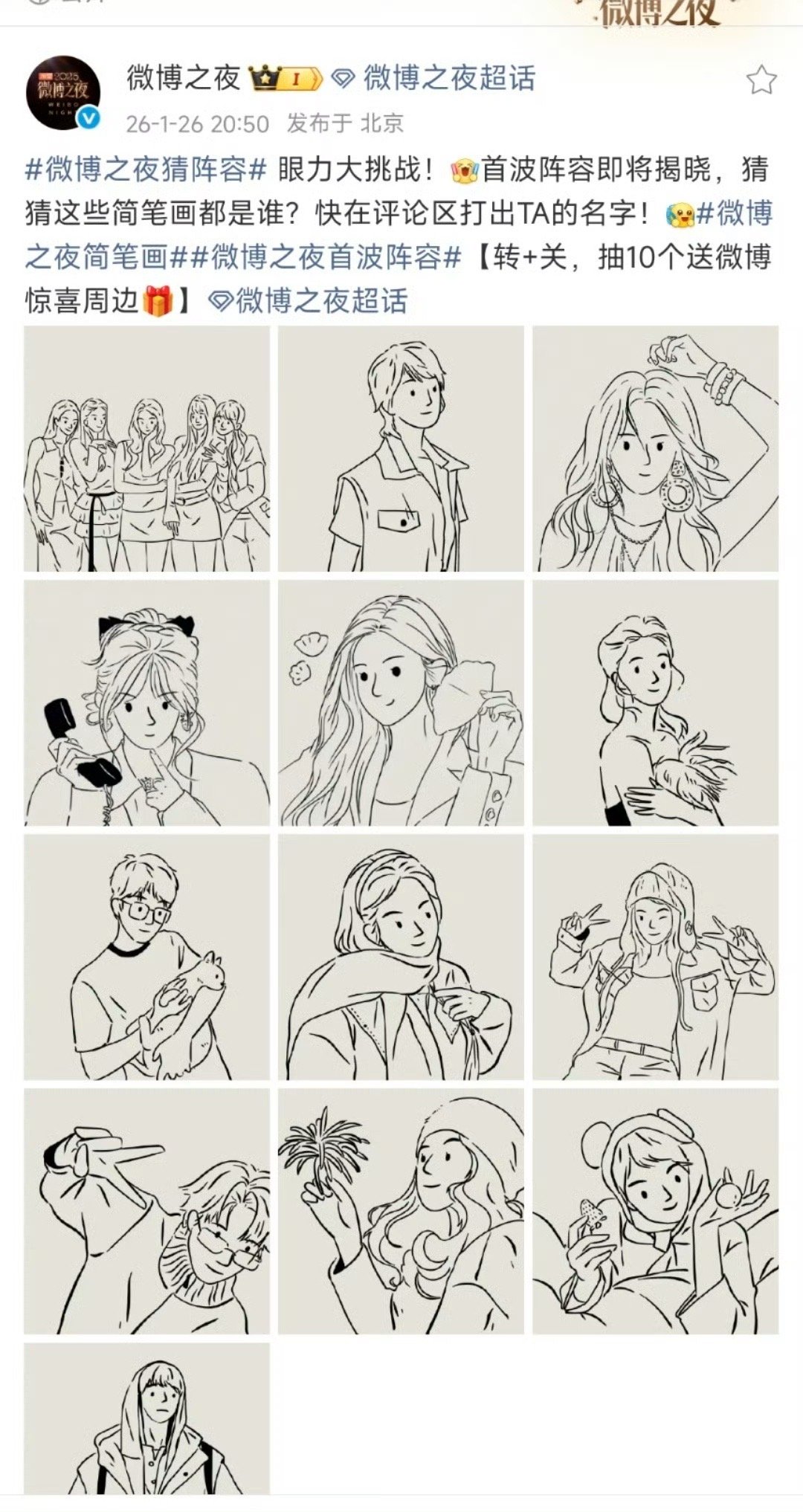 微博之夜到底还有谁在啊 微博之夜简笔画官宣太有创意了!饺子大王陈妍希、coser刘宇、猫系程潇……每个标签都精准捕捉嘉宾特色。TF家族和周柯宇的加入,让这场年度盛典更加值得期待。