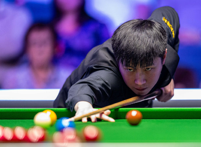 #赵心童5比0完胜江俊#斯诺克德国大师赛64进32强争夺中,赵心童在一场中国德比战中表现强势,以5-0的悬殊比分完胜江俊,顺利跻身32强。
