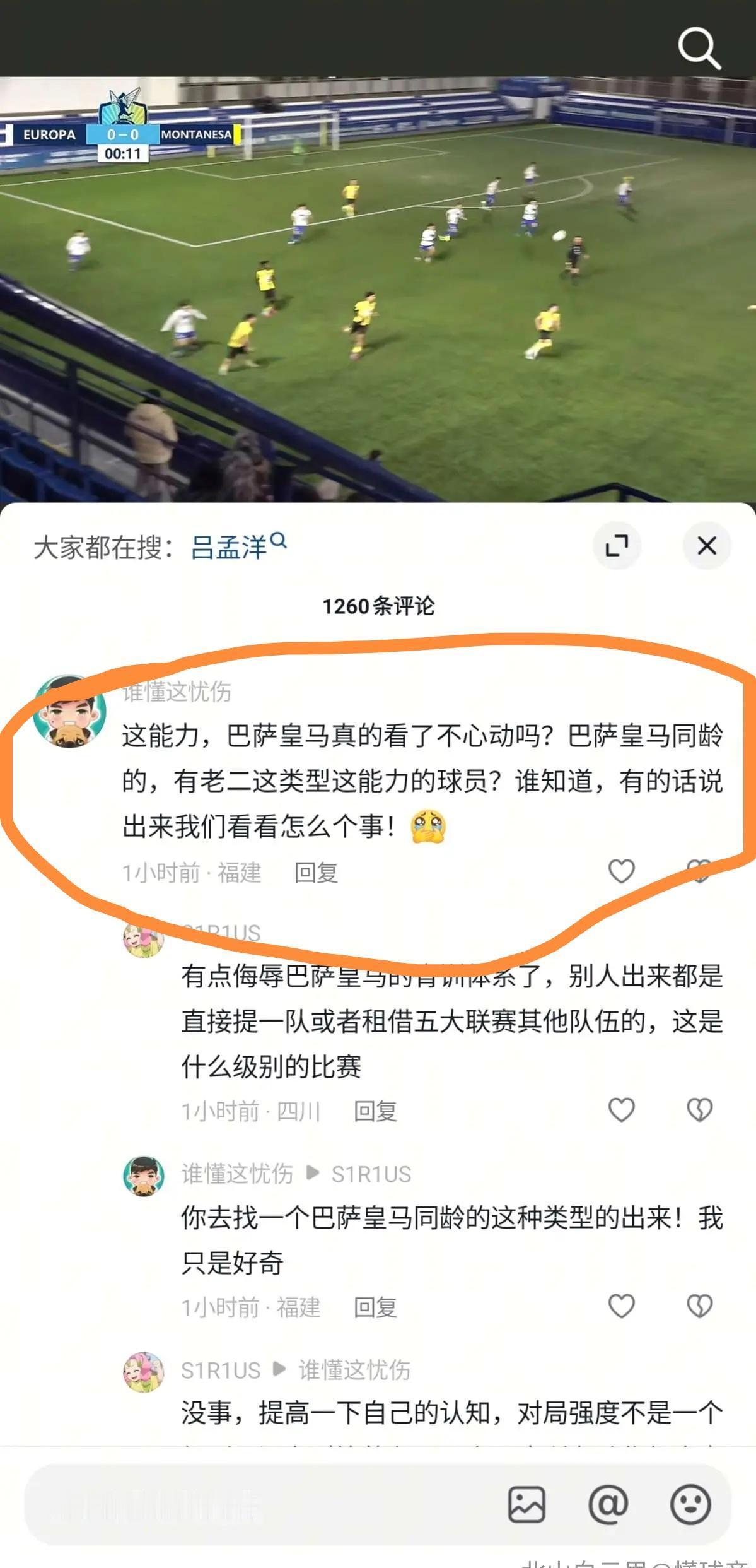 皇马? 巴萨? 别闹了。 你先弄明白,16岁的吕孟洋在西班牙踢的,到底是什么水平的联赛。 他在的,是加泰罗尼亚大区U16优选联赛,第二组。 这不是西甲梯队,甚至不是西班牙足协全国体系下的青年荣誉联赛。 说白了,就是一个地区级的邀请赛。 说他“超越同龄蒿俊闵”更是点燃了错误的期待。 蒿俊闵17岁,已经是国青队绝对主力,在德甲沙尔克04的U19梯队捶打。 吕孟洋,目前连国少队的正式比赛都没踢几场。 真正的考验不是在地区比赛进了几个球,而是他能否在2年内,从这个级别的联赛里杀出来,挤进西班牙全国U19荣誉联赛。 那才是欧洲职业足球真正的门槛,是区分“玩票”与“职业”的绞肉机。 中国足球太需要英雄了,但英雄不是靠吹出来的,是靠一步步踢出来的。 对吕孟洋最好的保护,不是将他捧成下一个谁,而是允许他安静地犯错、扎实地成长。