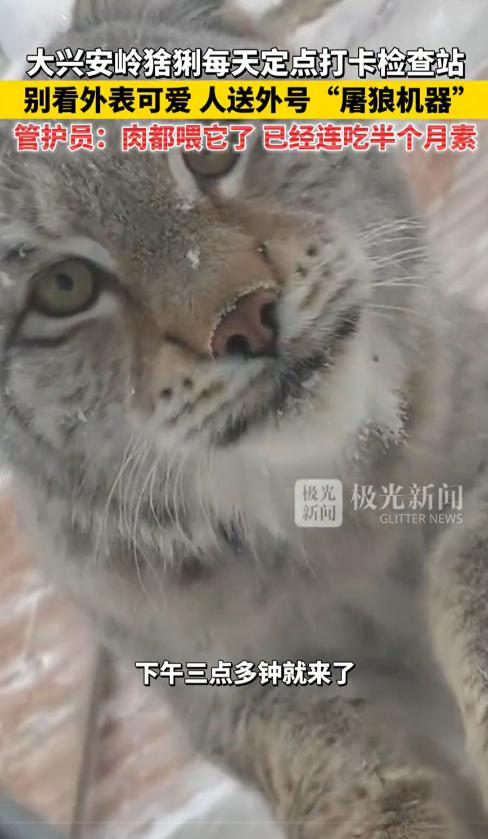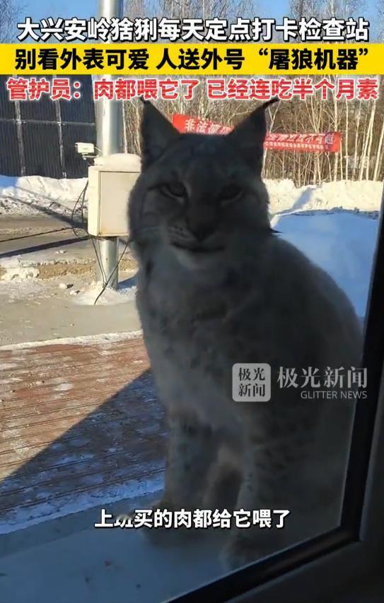 笑不活了!黑龙江大兴安岭,一只猞猁经过检查站时,工作人员看它可怜,就投喂了一块生肉,万万没想到,自此以后猞猁每天都会来定点打卡,但这就苦了检查站的工作人员了,他表示:这点肉都喂它了,自己都吃了半个月的素了。 最近大兴安岭一只猞猁火了,不是因为有多凶猛,反倒因为太会“蹭饭”圈了一波关注。 检查站的小哥本来只是心软发了次善心,没成想直接把自己变成了猞猁的专属投喂员,最后反倒委屈自己吃了半个月素。 事情其实很简单,这只猞猁路过检查站时,被工作人员张丙博看着觉得可怜,就递了一块生肉。 本来就是一次偶然的善意,万万没想到,这只猞猁直接把这儿当成了固定食堂。 它每天都踩着点来打卡,早上八点半准时到,待到九点半才走,下午三点多又会准时返场,不吵不闹就蹲在门口张望,那模样乍一看像只温顺的大猫,不知情的人说不定还想凑过去撸两把。 可小哥心里苦啊,自己花几百块钱买的肉全进了猞猁的肚子,自己反倒连着半个月没沾着荤腥,只能靠素食度日。 他半开玩笑地吐槽,这猞猁比自己还懂时间管理,天天雷打不动来报到,简直是个专业的“干饭特种兵”。 说白了,这只猞猁之所以放下身段来人类据点蹭饭,核心还是为了活下去,大兴安岭的冬天雪厚路滑,它平时捕食的雪兔、狍子要么藏得深,要么活动范围缩小,捕猎难度陡增。 小哥的一次投喂,给它提供了稳定的食物来源,对于耐饥但也需饱腹的猞猁来说,自然不会放过这个机会。 可别被它软萌的外表骗了,这货可不是好惹的主,看着像大猫,实则是战斗力极强的“屠狼机器”,成年个体体重能超三十公斤,裂齿发达,在野外连狼都敢招惹。 网友调侃着想撸的心思可以收一收了,真在野外遇上,第一反应该是保持距离,而不是拍照打卡。 小哥的投喂透着暖心,但背后也藏着隐忧,猞猁本是独居的森林猎手,靠敏锐的听觉和视觉捕猎生存。 长期依赖人类投喂,它的野外捕食本能可能会慢慢退化,就像之前有些受伤后被救助的猞猁,一旦失去捕猎能力,就再也回不了山林了,而且习惯了人类投喂后,它可能会把人类和食物绑定,增加人兽冲突的风险。 这只猞猁的打卡日常,其实也是当地生态保护的一个缩影,能让野生猞猁放心靠近人类区域,说明林区的生态在变好,动物的警惕性在降低。 但保护不是无底线投喂,现在有些保护区会在远离人类居所的地方设投喂点,既帮动物过冬,又能保留它们的野性。 希望等开春后,这只猞猁能重新回归山林,靠自己的本事捕猎觅食,毕竟对于野生动物来说,保持野性,才是对它们最好的守护,而小哥这份跨越物种的温柔,也成了寒冬里最动人的小插曲。