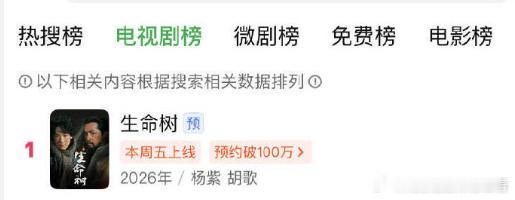 杨紫生命树爱奇艺双榜第一生命树站内双榜第一 《生命树》还没播就有好成绩,杨紫这部剧直接登顶爱奇艺站内双榜