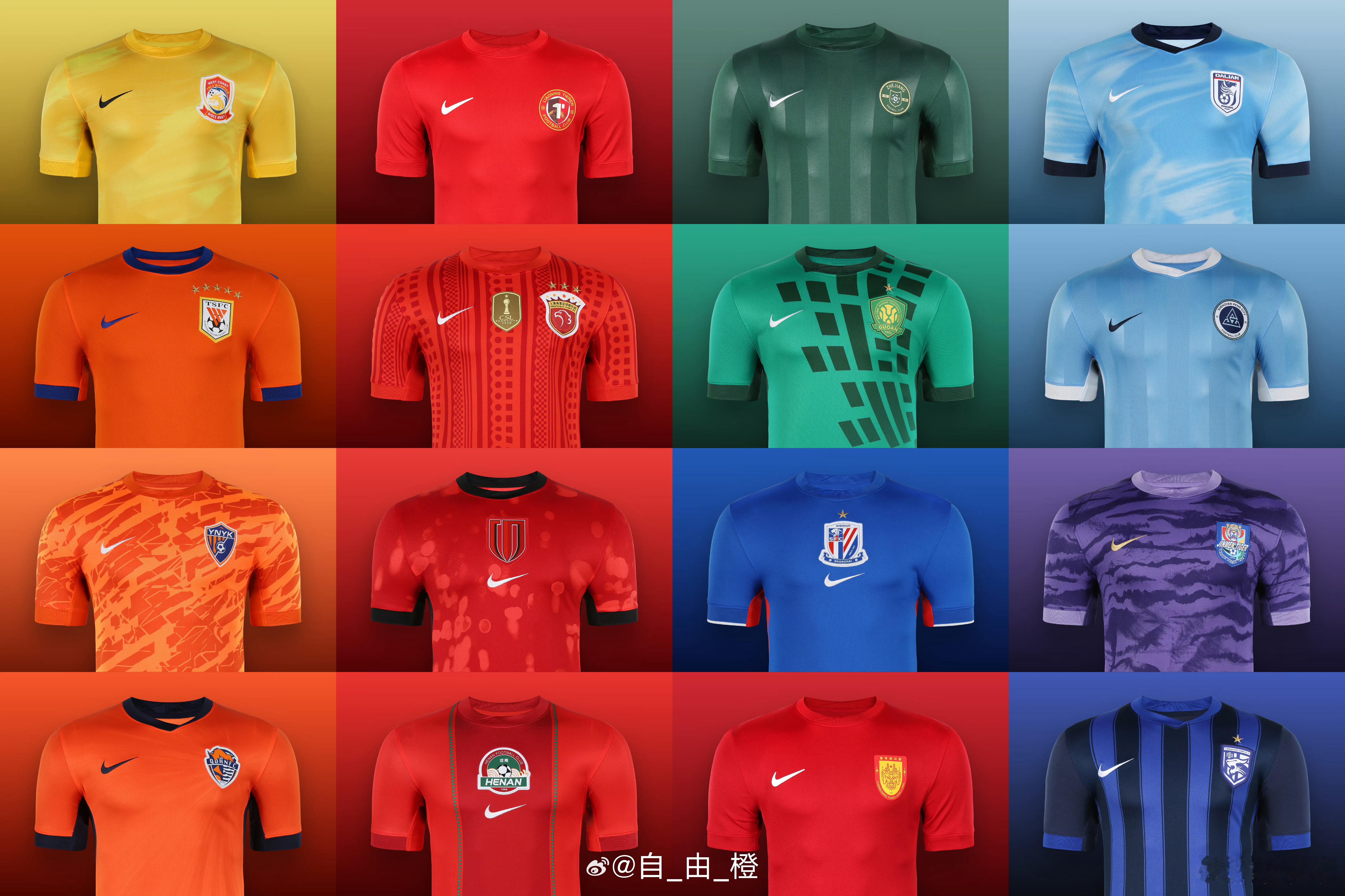 新赛季中超16队球衣…感觉咱球衣真没啥设计感啊……(图源见水印)