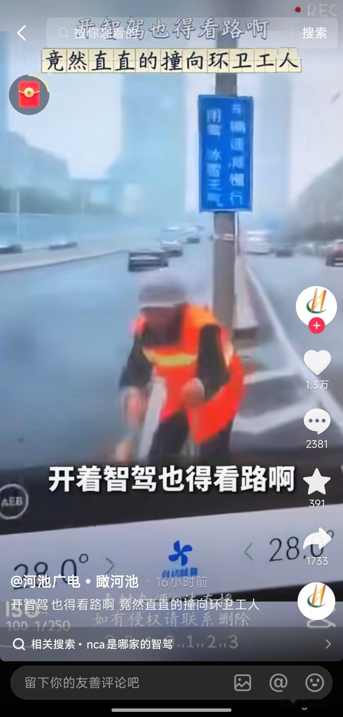 “智驾”撞环卫工人这事简单的聊一聊 这事故,不管到哪里都是驾驶员全责,好吗? 现阶段的智驾就是辅助驾驶,辅助驾驶明显偏离道路了,作为驾驶员你在干嘛?睡觉吗? 不管谁家的智驾,现阶段还是要注意力集中,该接管就接管,因为驾驶员才是第一责任人,别等出事了,然后骂车企的智驾垃圾。