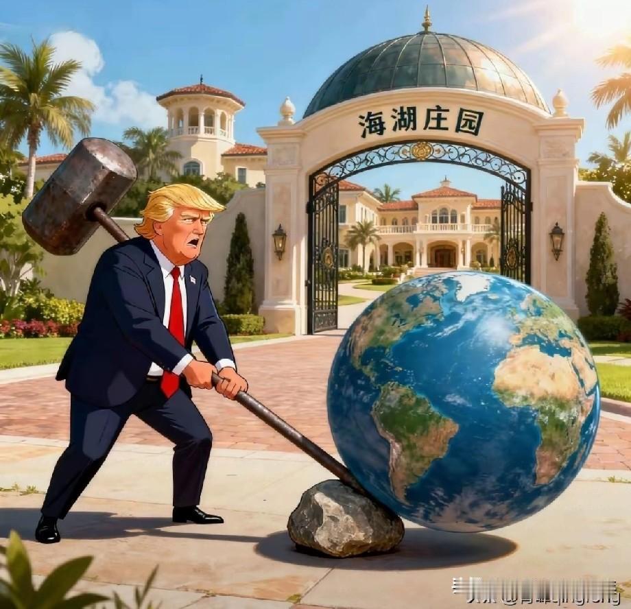 这张图片我太喜欢了,把特朗普的“个人英雄主义”体现的淋漓尽致,以己之力,却要撬动地球。我想起了一句名言:给我一个支点,能撬动地球。这是古希腊阿基米德的豪言壮语,不朽的杠杆原理,为人类科学进步做出了巨大的贡献。 特朗普在干什么呢?谁给他的支点呢?叫他如此猖狂,把白宫迁移到自己的海湖庄园,似乎整个美国都是他的,一张破嘴信口开河,高兴也说,不高兴也说,整日喋喋不休,唯恐天下不乱。 太不自量力了,任意挥舞制裁大棒,招摇过市抢劫掠夺,真是疯狂到让人忍无可忍的地步。 客观规律在运行,不知普儿何时休?再次伟大纯扯淡,耍给世界给谁看?没人看你拙劣的表演,甚至感到厌恶。