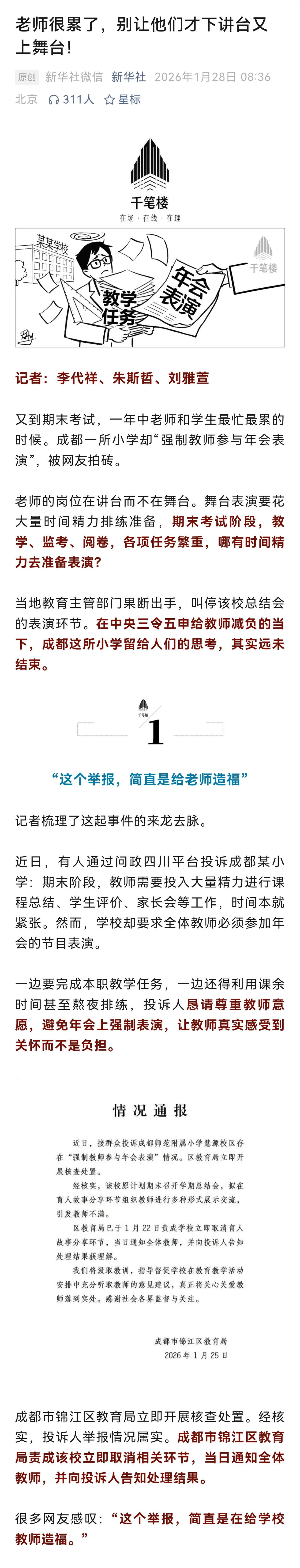 还是老问题:中小学是行政治校,还是教育家办学?行政治校才会有这么多由行政领导布置的非教学形式主义任务,校园里充斥着各种表演。