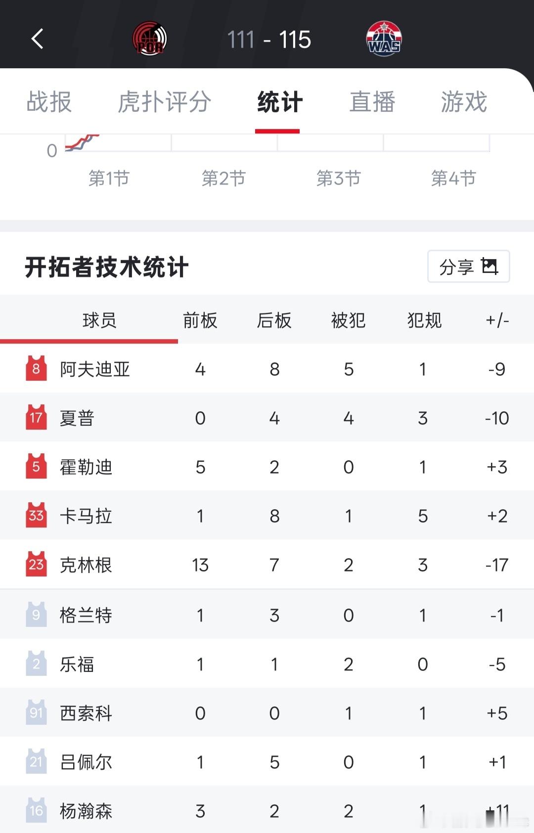 开拓者111-115不敌奇才,小杨出战12分钟,投篮6中2,三分1中0、罚球2中2,得到6分5篮板1助攻,正负值+11,全队最高。比数据更重要的是,正负值+11,说明今天上场对于球队来说是正面的,继续加油小杨。开拓者vs奇才杨瀚森6分5篮板杨瀚森正负值全队最高杨瀚森