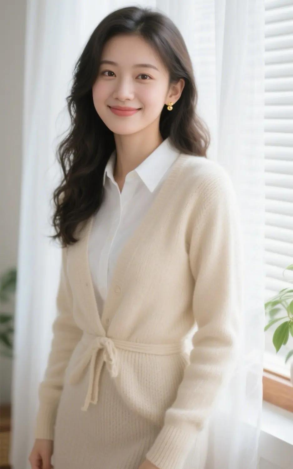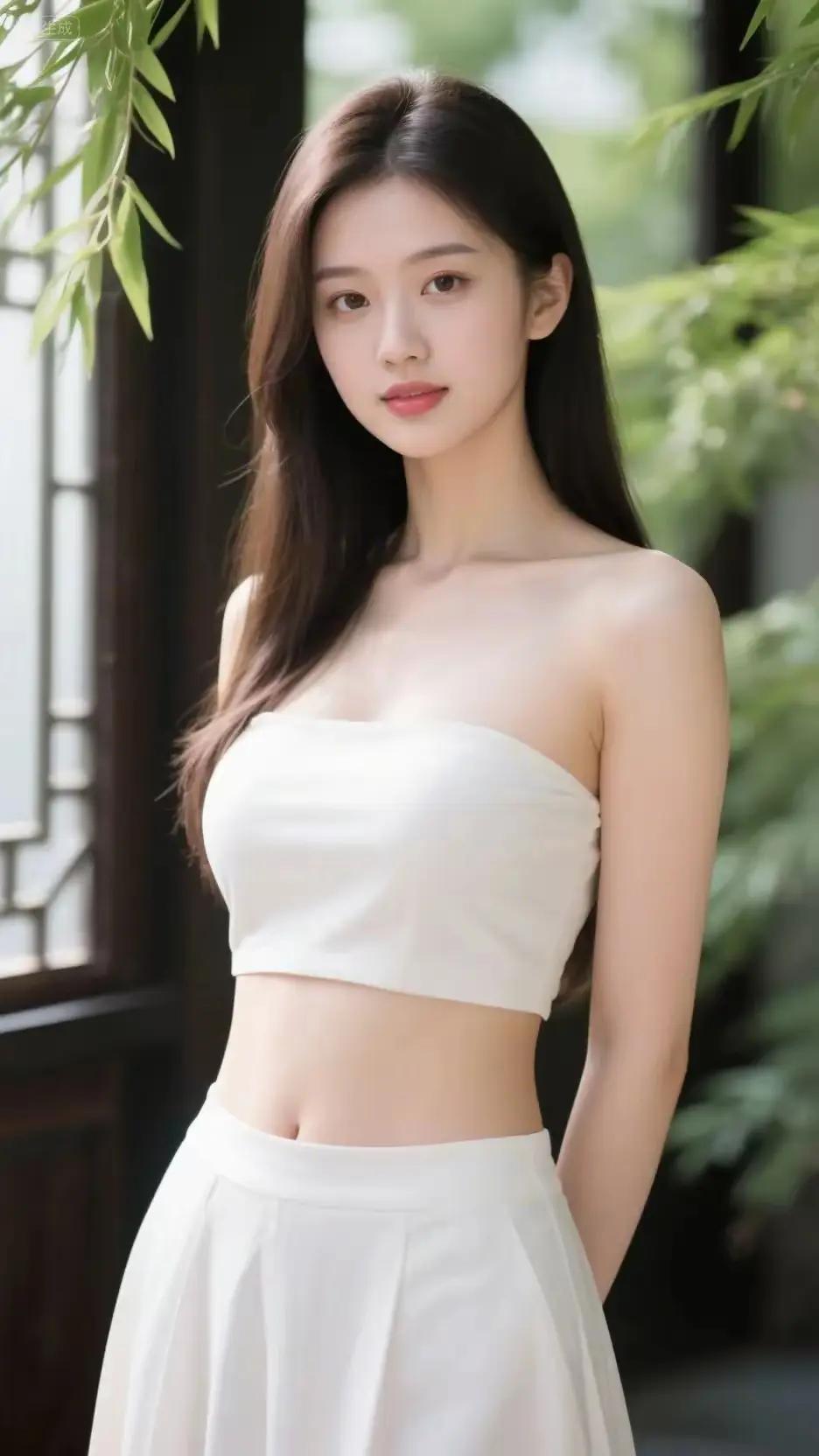 《白裙里的轻暖》暖调光影里,白裙衬出舒展的姿态,细肩带轻垂的模样,浸着轻缓