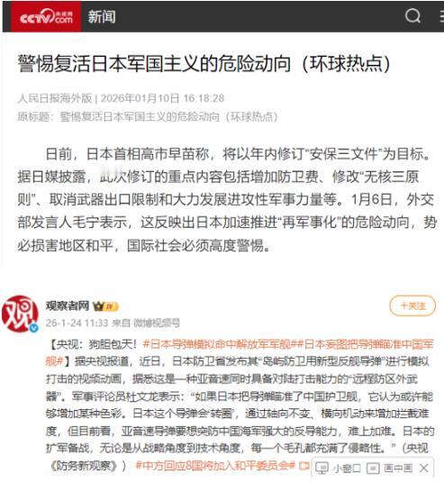 奉劝所有中国人,大家一定要有心理准备,央视已经点出了核心问题:现在日本要做的,不是闹着玩的小动作,而是明显有大动作的趋势。日本最近加大军费开支,还接连修改“安保三文件”,很多日本人也都认为,高市政府正把国家往“战争国家”这条路上推。 2022年,日本政府修改了“安保三文件”,将“对敌基地攻击能力”正式写入国家安全战略。这一变动表面看是应对“安全威胁”,实则意味着日本放弃了长期宣称的“专守防卫”原则。 所谓“对敌基地攻击能力”,本质上就是主动进攻的能力。按照设想,是靠卫星、侦察机发现所谓“攻击征兆”后,直接用战机或远程导弹先发制人,炸掉对方的基地。这跟过去日本一直宣称的“专守防卫”原则完全相悖,专守防卫原本是说只有在遭到攻击后才能还手,而且反击不能超出必要限度,现在这套逻辑直接被打破了,等于明着放弃了长期的防御立场。日本防卫大臣都公开说过,不排除让自卫队飞机进入对方领空轰炸据点的可能,这已经把进攻意图摆到了台面上。 为了支撑这种新的能力,日本的军费开支涨得惊人。2023年的防卫预算还是6.8万亿日元,2024年就跳到7.9万亿,2025年涨到8.7万亿,到2026年直接计划冲到9万亿日元。这个数字不是孤立的,而是五年防卫总预算43万亿日元计划里的一部分,最终目标是到2027年让防卫开支占GDP的比例达到2%。要知道,长期以来日本都把防卫费占GDP1%以下当作红线,是和平主义的重要标志,现在主动打破这条线,背后的扩军心思再明显不过。 这些增加的军费不是花在嘴上,而是实实在在砸在了进攻型武器上。日本正在依托三菱重工加速研发高超音速巡航导弹,计划2025年就能试产,这种导弹能对海上大型舰船形成威慑。同时还在把现有12式地对舰导弹的射程延长到1000公里,而且能从陆海空多个平台发射。空中力量方面,除了加紧改造F-15J战机,让它能发射美制远程导弹,还在采购F-35A战斗机,配合射程500公里的防区外导弹使用,上百架这样的战机短时间就能飞临日本海上空发起攻击。海军方面,出云级直升机驱逐舰正在进行航母化改造,五年内至少能有两个轻量级航母编队,最新的“白鲸”号潜艇下水后,日本22艘潜艇的战队体制也已经成型。 更值得注意的是,日本还在新兴领域布局进攻能力。依据所谓“跨域作战”概念,已经成立了网络防卫队、太空作战队和电子战部队,还打算在现有电子战中队基础上再建6支,同时研发高功率微波武器。在侦察预警方面,正打造卫星星座,专门用来探测高超音速武器,确保任何时候都能掌握目标动态,这套体系完全是为主动进攻服务的,跟防卫根本不搭边。 高市政府的动作还在升级,已经在探讨下次修订“安保三文件”时,修改“无核三原则”里不引进核武器的内容,同时可能为对外武器出口开绿灯。这意味着过去束缚日本军备扩张的条条框框正在被逐一打破,和平宪法里“避免助长国际纷争”的理念快要形同虚设了。这种趋势连日本国内都有不少反对声音,全国民调显示80%的人坚持“无核三原则”,《东京新闻》的社论直接批评这种做法短视,认为提高防卫费会加重国民负担,还会毁掉日本的和平形象。 日本的这些动作背后,有明显的外部配合。美国正在日本三泽空军基地部署48架F-35A隐形战机,替换老旧的F-16,加上之前在岩国基地部署的F-35B和F-35C,美军在日本的隐形战机力量大幅增强。美日两国防长已经达成共识,要升级同盟指挥控制系统,加强双边演习的实战性,还要在国防工业基础领域深度合作。美军直言,在日本部署先进战机就是为了增强地区威慑力,提升应急响应能力,而日本正好借着这种同盟关系,加快自己的军事扩张步伐。 从2022年修改安保文件,到逐年暴涨的军费,再到进攻型武器的密集研发和部署,还有对和平原则的不断突破,这些动作一环扣一环,形成了清晰的轨迹。这不是零散的政策调整,而是日本安保战略的根本性转向,核心就是突破战后限制,从防卫型转向进攻型,往所谓“战争国家”的方向靠。这种趋势已经越来越明显,绝不能掉以轻心。