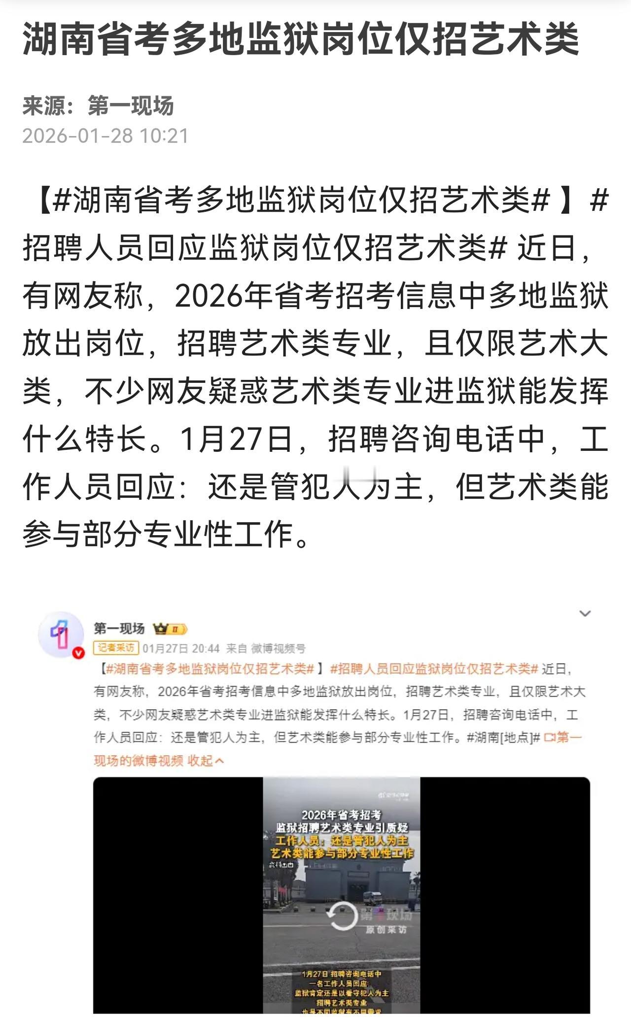 为何仅招艺术类毕业生?相关招聘监狱要给出更多解释,说明这些岗位只适合艺术类毕业生