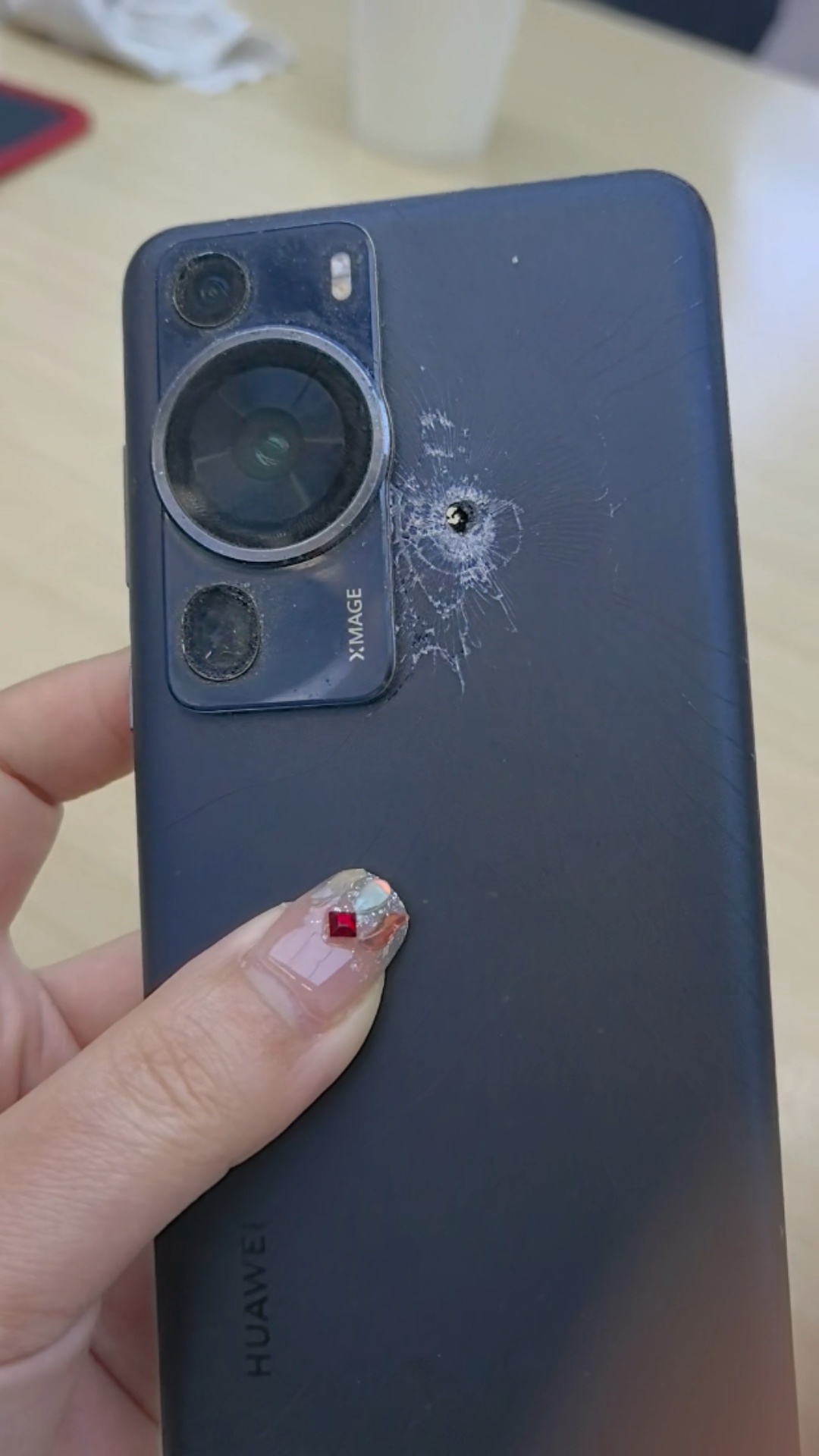 神机啊,华为P60被钉子戳穿了,屏幕能亮还能用,看起来影响不大
