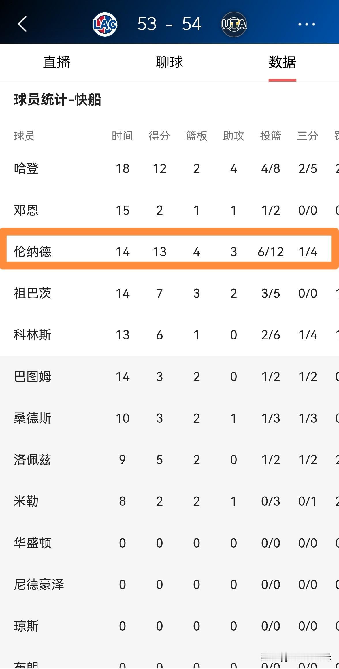 快船巨星伦纳德又把我的脸打肿了!在今天快船客场挑战爵士的比赛中,目前双方半场战罢,快船以53:54落后于对手。在前两节比赛中,伦纳德首发出战14分钟,投篮12中6,其中三分球4中1得到13分,还有4篮板3助攻1盖帽,他的场上正负值为全队最高的+8。 值得一提的是,在第一节比赛中伦纳德的表现非常拉胯,因此我忍不住怒喷伦纳德,然而在第二节比赛中伦纳德就用非常出色的表现把我的脸打肿了。