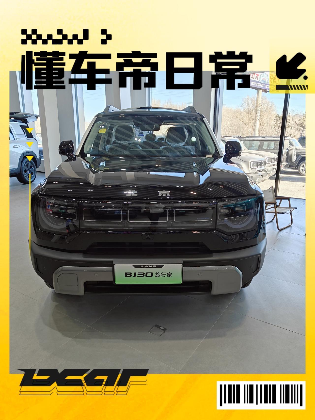 北京BJ30依旧是方盒子造型,车型更小巧。但也确确实实是我第一次接触这台车。抱着学习的态度了解这台车,体验以后又做了一些功课,说说我对这台车的感受: 1️⃣外观: ❤️喜欢: 前脸环形LED灯,两侧圆形灯组,给人感觉很智能,科技感不错。其次就是方盒子造型搭配挑高式的行李架,机舱盖上方的隆起肌肉感很强,运动感还是很不错的。 💔不喜欢: 首先让我不喜欢的就是前杠的造型设计,看起来很突兀,不怎么美观。其次是车尾缺少外挂备胎,整个后备箱盖很平,缺乏设计和层次感。 2️⃣内饰: BJ30内饰有属于自己单独一套设计风格,对于这台车内饰也总结了几点感受: ✅先说优点: ❤️优点①:内饰质感不错 体验的展车内饰用了很多橙色的点缀,设计恰到好处,点睛之笔,和座椅缝线非常搭配,除此之外门板橙色的拉手更是越野味十足。副驾前用了一大块的拉丝面板装饰,里面还映着一些越野元素的图案,非常不错。 ❤️优点②:科技感 嵌入式液晶仪表和中控15.6智能车机,体验感受还是挺不错的,对于这台车小车科技感很强。除了车机本身之外,连接手机也比较方便,日常使用足够。 ❎再说缺点: 💔缺点①:没有物理按键 相比BJ60和BJ40,这台BJ30取消了物理按键,这令我非常不理解,怎么还有这种反向操作。而且60和40上的物理按键美观性很不错,反馈也很舒服,建议恢复。 💔缺点②:7座版本鸡肋 整个展厅BJ30的尺寸最小,却偏偏设计了一个7座版本,打开三排以后空间很小,后备箱更是几乎放不下什么东西。比较鸡肋。 💔缺点③:配置偏低 低配车型没有座椅通风、腰托,副驾还是手动调节,这在国产车上算是比较寒酸的了。而且对于北方用户来说,很在意方向盘加热这个功能,但偏偏又不是全系标配 。 📖总结归纳: BJ30虽然在展厅里挂着绿色展示牌,但这台车是挂蓝牌的,混动版本也是挂蓝牌不能充电的。体验以后觉得这台车车身更小巧,车身颜色更丰富,更觉得适合女性车主。但有个非常重要的事,就是这台车的油耗依旧在同级别车型里还是偏高的。公里数多的要慎重考虑。【来自懂车帝车友圈】