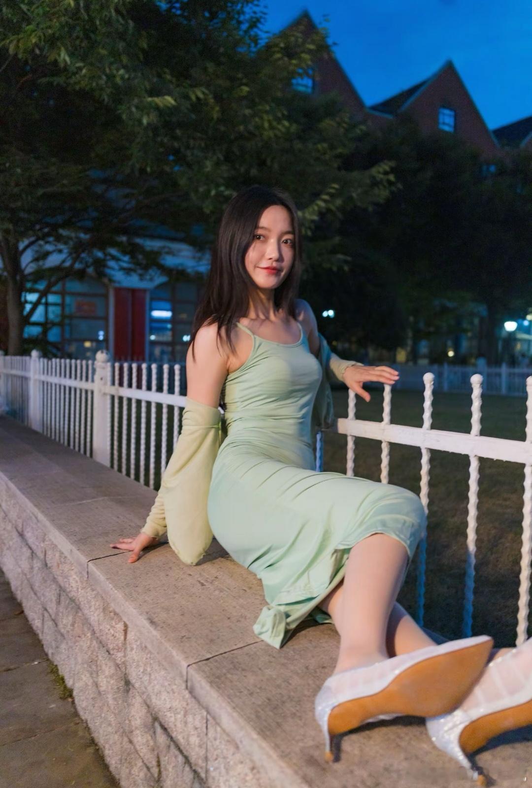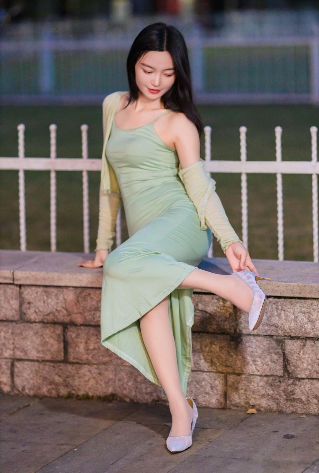 今天穿什么 绿色吊带连衣裙颜控正义日记的红包美女