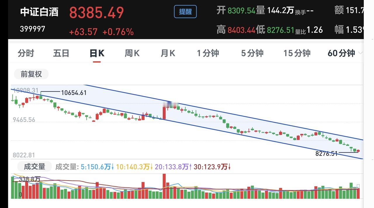基金:白酒板块盘中直线上涨 白酒板块盘中大涨,下午开盘以后,从绿盘直接翻红,上涨幅度达到了0.87%,许多人在关心,这是不是反转。 看下面的截图2,这是白酒板块的日K线图,昨天下跌的阴线实体比较大,今天需要一个放量的中大阳线,对昨天来一个阳包阴,这样的情况之下,我们才可以看止跌企稳,这样的情况之下,我们都不能看止跌反转。 到现在为止的上涨幅度,并没有能够对昨天的阴线实现阳包阴,所以,连止跌企稳的标准都没有能够达到,更不要说止跌反转了。 长期下跌以后的板块,反转不是一朝一夕的事情,反转是需要长期观察以后才能知道的,没有人能够知道反转点在哪里,如果出现止跌企稳的信号,只是表明这个板块不会再像前段时间那样连续大幅度下跌了,它会在底部区域震荡一段时间,然后再寻找一个上涨的契机,那个时候才是反转上涨的起点,对于白酒板块来说,现在谈论反转还早,还很早。 对于白酒板块来说,现在是定投最合适,我是每天定投200块钱,这样设置好以后,它每天是上涨还是下跌,对我并不是很重要,它上涨了,我挣钱,它下跌了,我多捞了筹码,不管它是上涨还是下跌,对我都是有好处的。 花一秒钟点赞,花30秒钟评论,就是对我最大的支持,谢谢大家的支持。