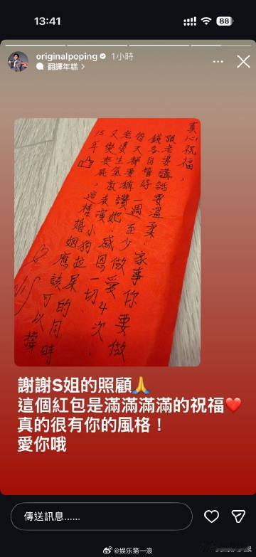 陈汉典晒小S给的红包小S给陈汉典的6点结婚注意事项 陈汉典晒小S给的红包,上面小S手写婚后6点注意事项:“真心祝福,跟老婆讲话要温柔,家事你要做,钱各自管好,一周至少4次,每天都要称赞她,感恩一切,老婆生气就表演小狗拉屎的同时又变丧尸,这样婚姻应该可以撑15年。”蔡康永也送出村上隆版画作为新婚礼物。