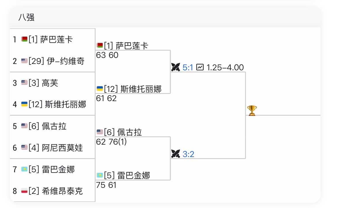莱巴金娜在去年总决赛夺冠,半决赛击败佩古拉,决赛击败萨巴伦卡!今年澳网半决赛同样对阵佩古拉,如若进决赛大概率打萨巴伦卡……会跟短剧一样同样的演员,上演同样的剧情吗?这很澳网澳网2026澳网女单四强对阵
