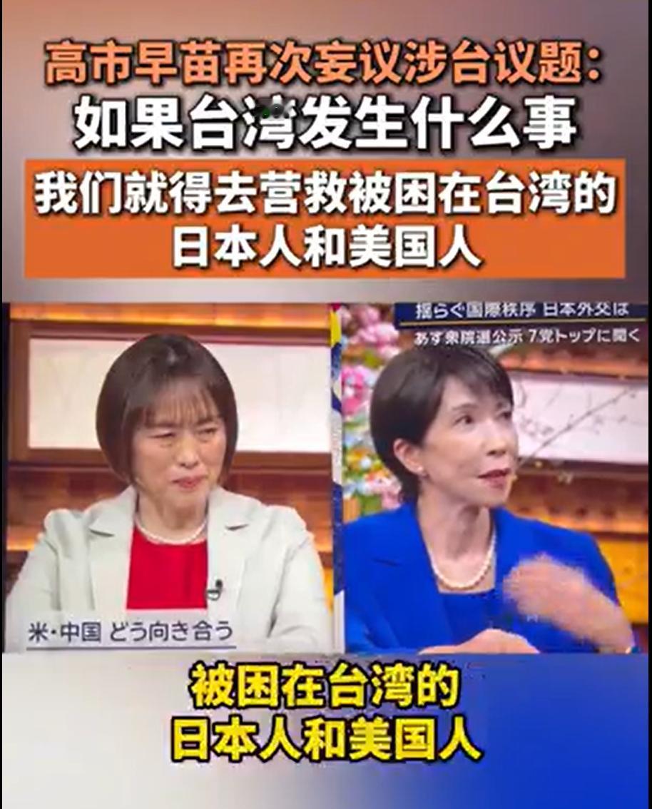 唯一挨过核弹的, 要保护唯一扔过核弹的。 高市早苗再次妄议涉台议题: 如果台湾发生什么事, 我们就得去营救被困在台湾的日本人和美国人。